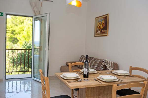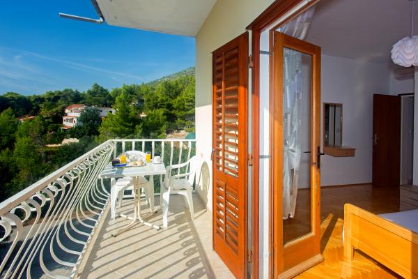 Balič Apartmány se nachází na jižní straně ostrova, v malé vesnici Ivan Dolac. Díky největším počtem slunečných dní v Chorvatsku a na strmých svazích vinic jižní straně ostrova v Ivan Dolac oblasti je získán z hroznů, které tvoří ty nejlepší kvalitní vína. Ivan Dolac je hrdá na své prostředí plné aromatických bylin a jiné středomořské flóry. Z místa krásný výhled na malém ostrově Šćedro a Korčula. Příroda a životní prostředí v Ivan Dolac, jsou ideálním místem pro relaxační dovolenou, zejména pro rodiny s dětmi, starší lidé, ale i pro hosty unavení z každodenního městského hluku. Balič Apartmány jsou koncipovány jako samostatné byty, s vlastním vchodem. Každý apartmán má jednu nebo dvě ložnice, obývací pokoj, plně vybavená kuchyň a jídelní kout, koupelna a WC, klimatizace, parkovací místo a velká terasa s výhledem na moře. Jako registrovaný rodinné farmy, vyrábějící extra panenský olivový olej, víno, brandy a jiné domácí výrobky.