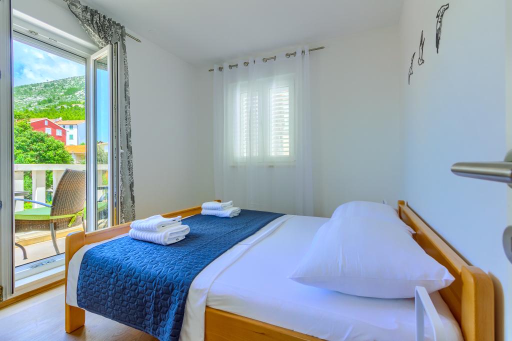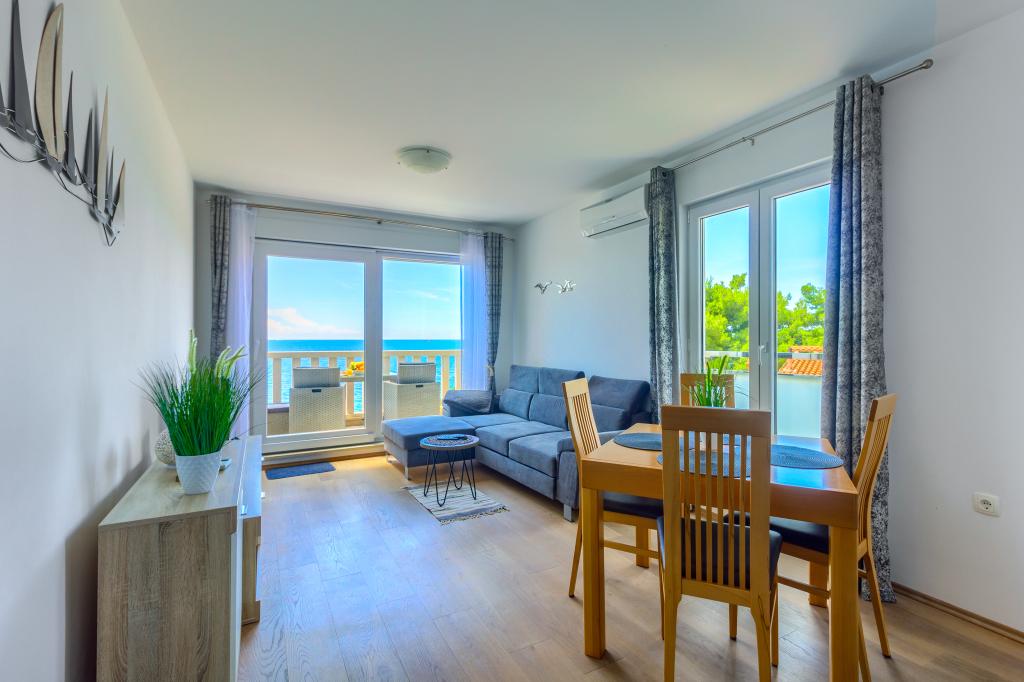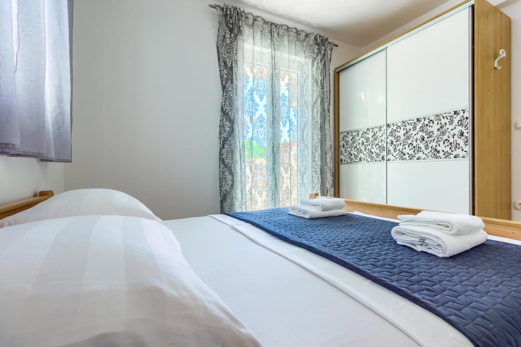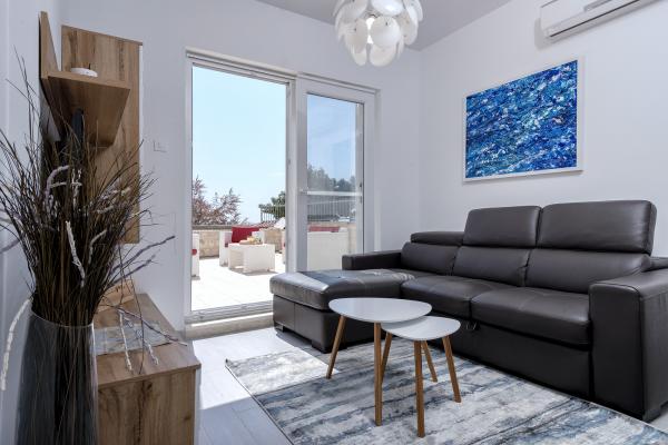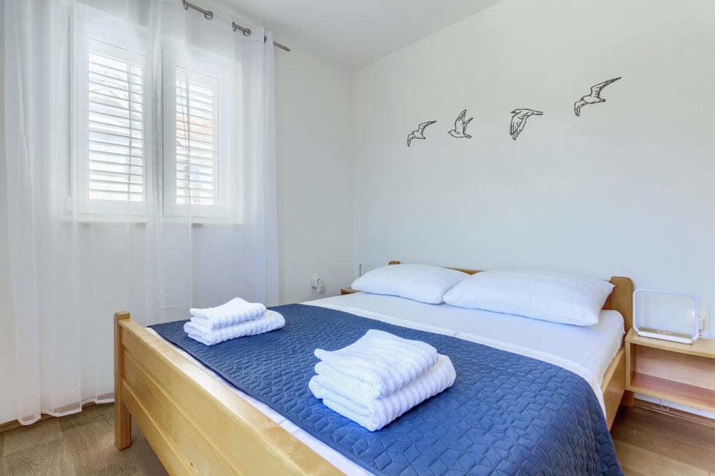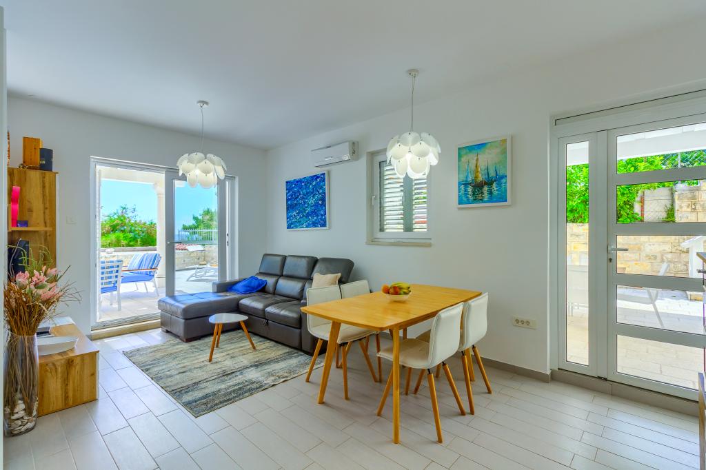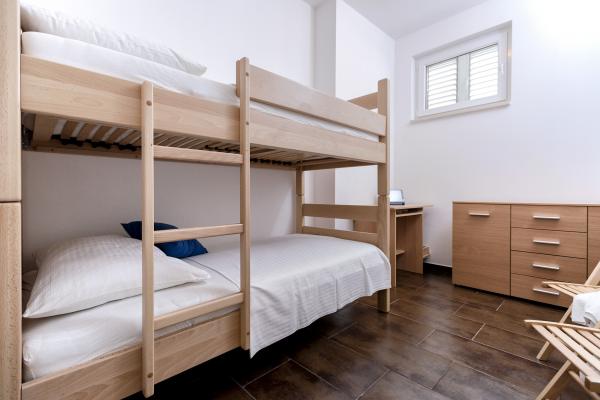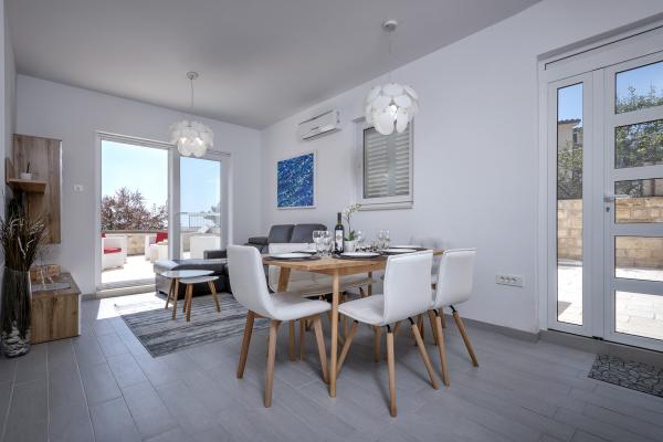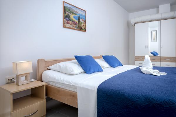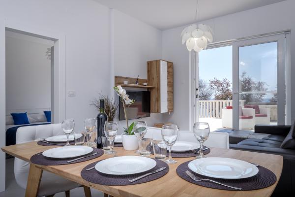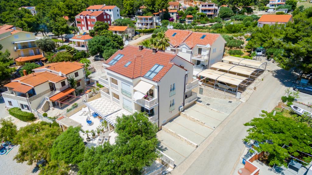 Nově postavené a moderně vybavené apartmány se nacházejí přímo u pláže v klidném městečku Ivan Dolac. Apartmány Unit 1 a Unit 6 jsou pro 4 osoby, skládají se z ložnice s manželskou postelí 160 x 200, koupelny se sprchovým koutem, kuchyně a jídelny a obývacího pokoje se SAT-TV a rozkládací pohovkou, a terasa s krásným výhledem na pláž, moře a ostrovy. Apartmány P1 a P2 jsou pro 8 osob, skládají se ze 3 ložnic a rozkládací pohovky v obývacím pokoji, 2 koupelen, plně vybavené kuchyně s myčkou, jídelny a jídelního stolu na velké terase vpředu s výhledem moře. Byt P2 má větší plochu než P1, protože má jednu celou ložnici a koupelnu o patro níže. Restaurace a kavárny jsou vzdálené pouhých 20 metrů a obchod 100 metrů od apartmánu. Přestože se dům nachází v samém centru tohoto malého turistického městečka, nabízí naprostý klid a soukromí, protože hosty jsou většinou rodiny s malými dětmi, které si užívají krásné pláže a křišťálově čisté moře.