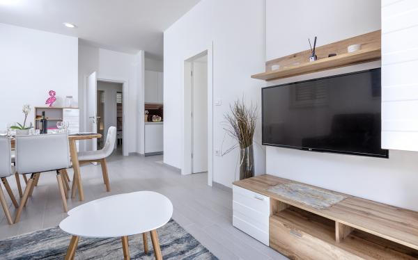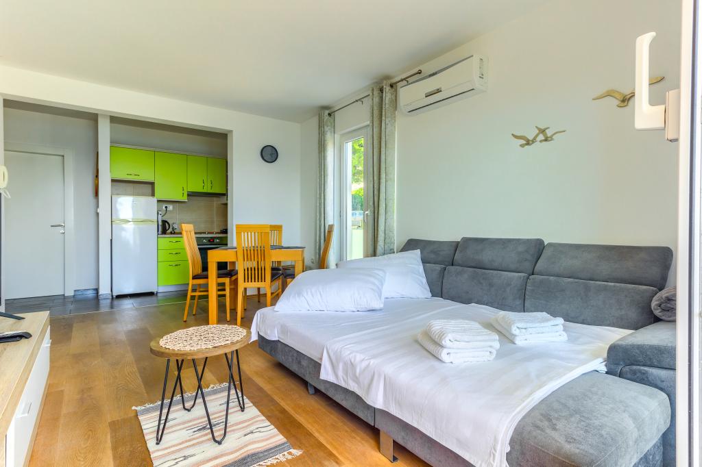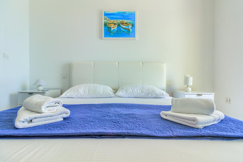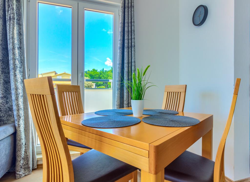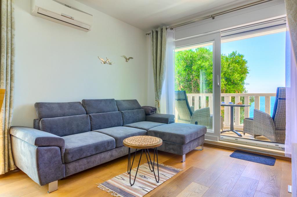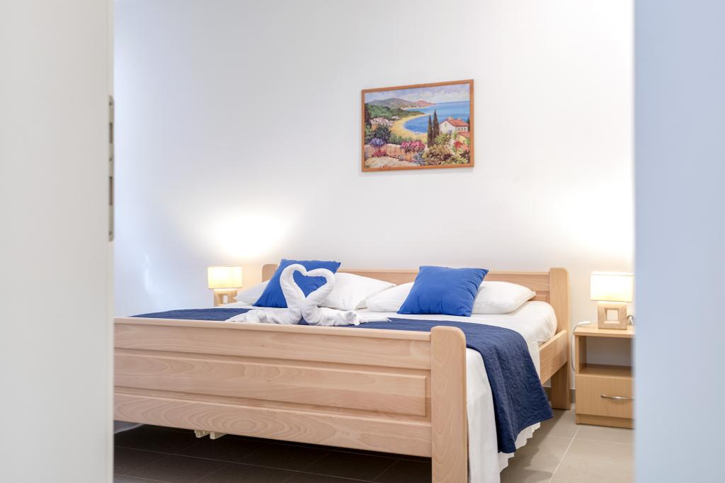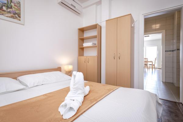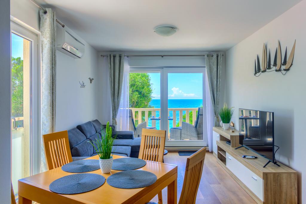 Nově postavené a moderně vybavené apartmány se nacházejí přímo u pláže v klidném městečku Ivan Dolac. Apartmány Unit 1 a Unit 6 jsou pro 4 osoby, skládají se z ložnice s manželskou postelí 160 x 200, koupelny se sprchovým koutem, kuchyně a jídelny a obývacího pokoje se SAT-TV a rozkládací pohovkou, a terasa s krásným výhledem na pláž, moře a ostrovy. Apartmány P1 a P2 jsou pro 8 osob, skládají se ze 3 ložnic a rozkládací pohovky v obývacím pokoji, 2 koupelen, plně vybavené kuchyně s myčkou, jídelny a jídelního stolu na velké terase vpředu s výhledem moře. Byt P2 má větší plochu než P1, protože má jednu celou ložnici a koupelnu o patro níže. Restaurace a kavárny jsou vzdálené pouhých 20 metrů a obchod 100 metrů od apartmánu. Přestože se dům nachází v samém centru tohoto malého turistického městečka, nabízí naprostý klid a soukromí, protože hosty jsou většinou rodiny s malými dětmi, které si užívají krásné pláže a křišťálově čisté moře.