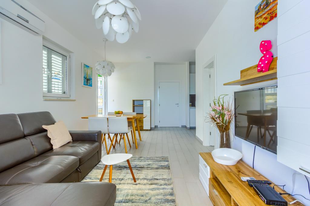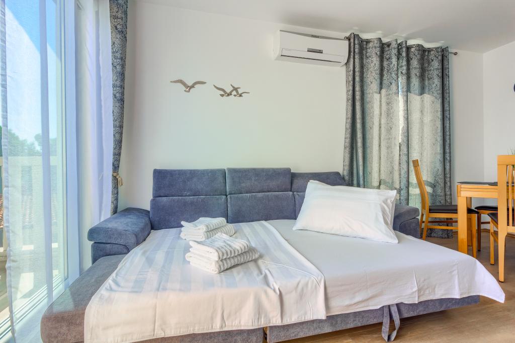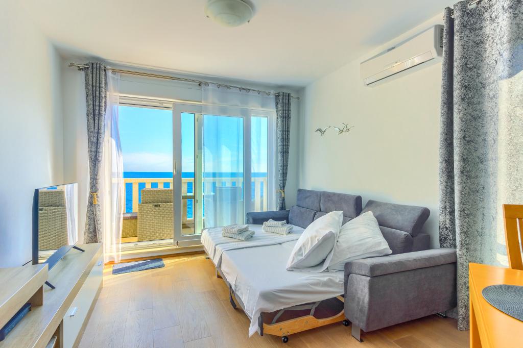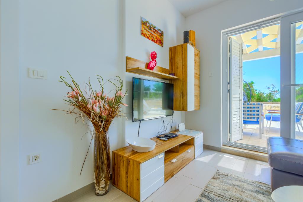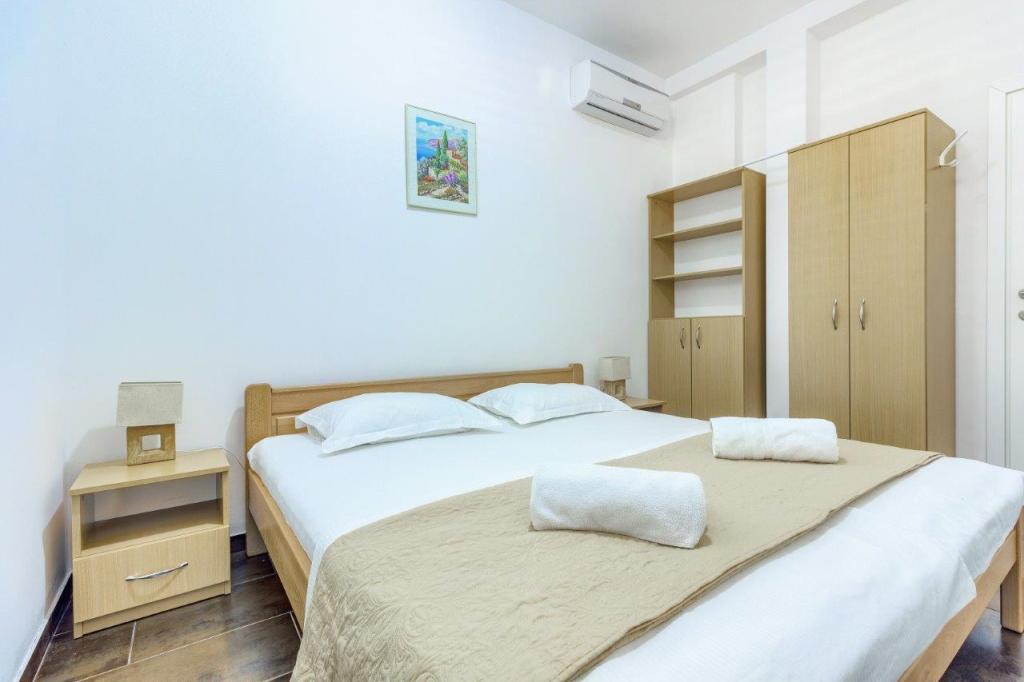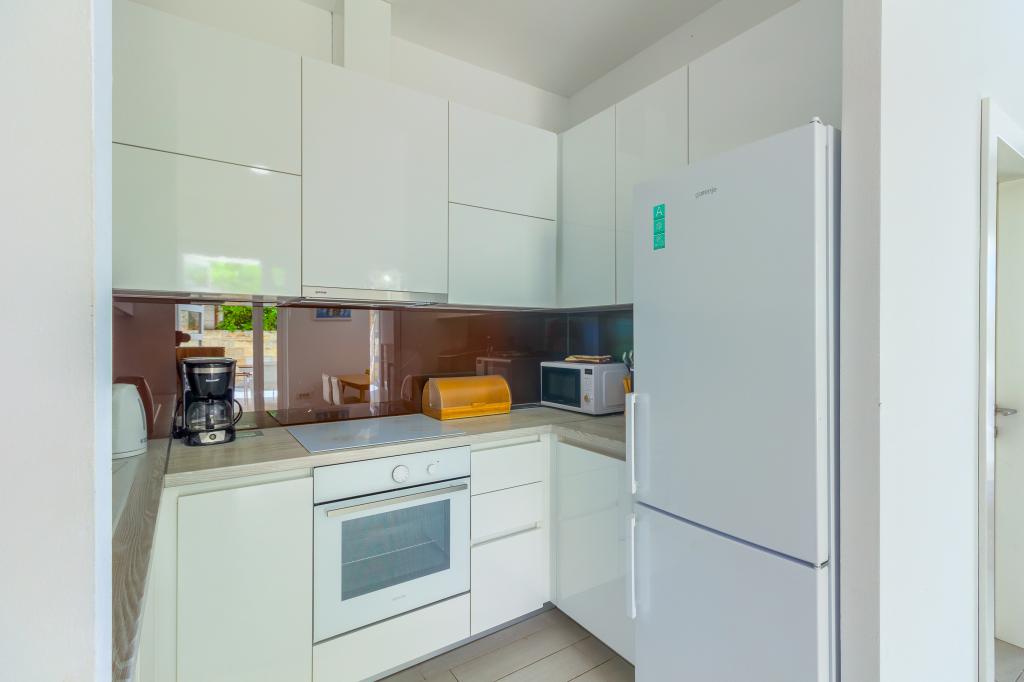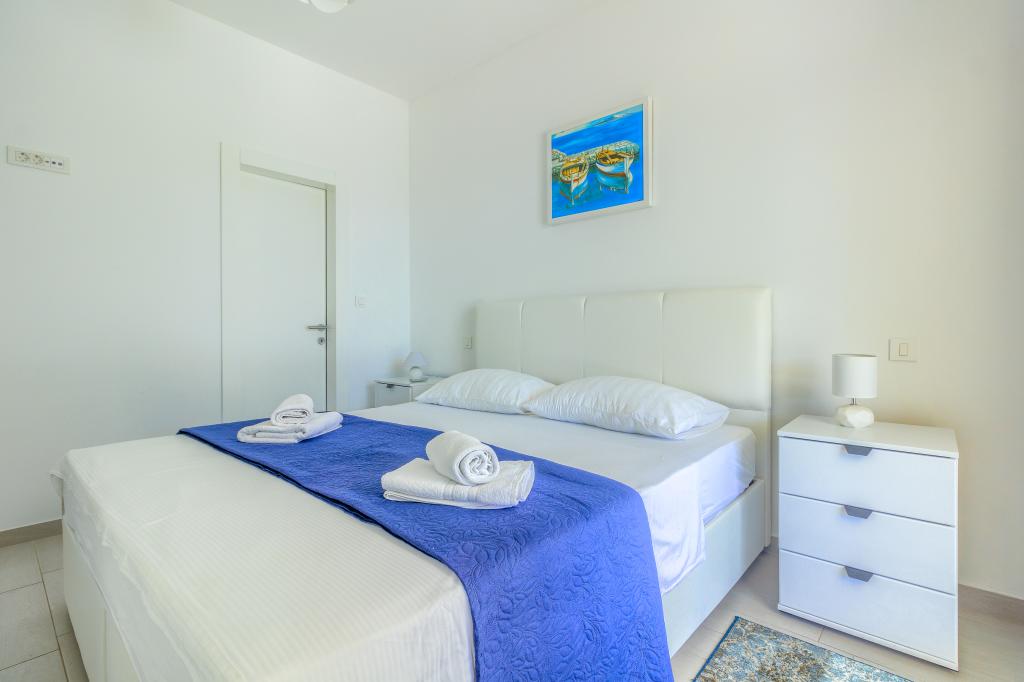 Nově postavené a moderně vybavené apartmány se nacházejí přímo u pláže v klidném městečku Ivan Dolac. Apartmány Unit 1 a Unit 6 jsou pro 4 osoby, skládají se z ložnice s manželskou postelí 160 x 200, koupelny se sprchovým koutem, kuchyně a jídelny a obývacího pokoje se SAT-TV a rozkládací pohovkou, a terasa s krásným výhledem na pláž, moře a ostrovy. Apartmány P1 a P2 jsou pro 8 osob, skládají se ze 3 ložnic a rozkládací pohovky v obývacím pokoji, 2 koupelen, plně vybavené kuchyně s myčkou, jídelny a jídelního stolu na velké terase vpředu s výhledem moře. Byt P2 má větší plochu než P1, protože má jednu celou ložnici a koupelnu o patro níže. Restaurace a kavárny jsou vzdálené pouhých 20 metrů a obchod 100 metrů od apartmánu. Přestože se dům nachází v samém centru tohoto malého turistického městečka, nabízí naprostý klid a soukromí, protože hosty jsou většinou rodiny s malými dětmi, které si užívají krásné pláže a křišťálově čisté moře.