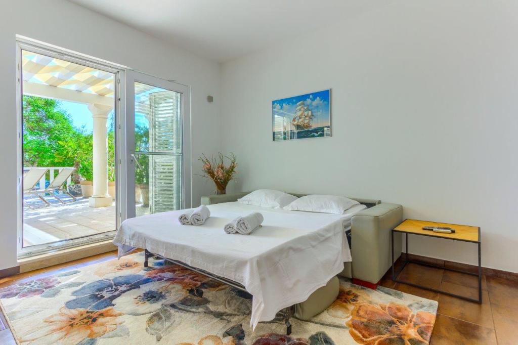 Pobytová taxa je v ceně.Další vybavení a zařízení v ceně: - internet, satelitní TV, klimatizace, žehlička, plně vybavená kuchyň (myčka), pračka je v koupelně, soukromé parkoviště je zajištěno - ložní prádlo se mění jednou týdně, ručníky dvakrát za rok týden v případě potřeby i častěji Možnost výletů motorovým člunem s kapitánem a dopravy na blízké ostrovy, ostrůvky a skryté zátoky. Dostupná cena.