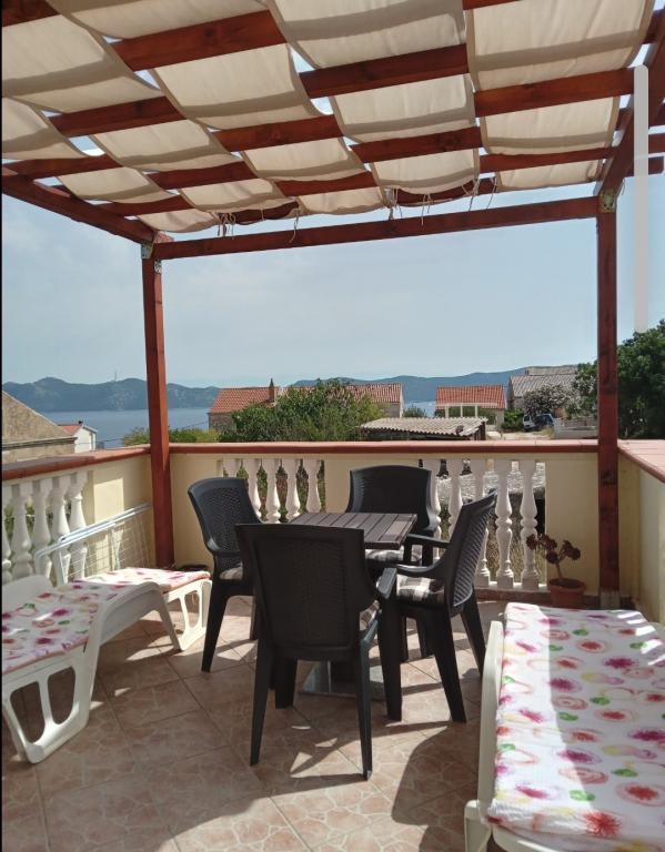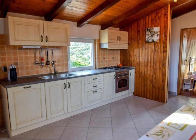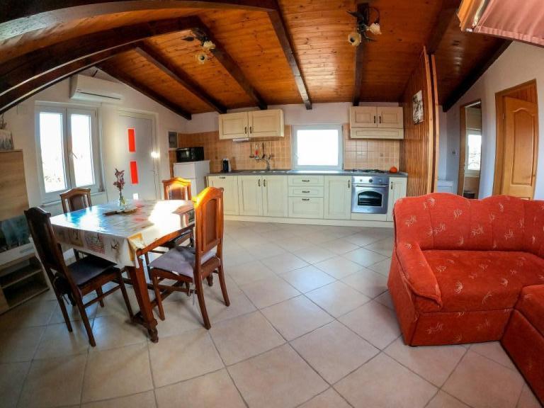 Apartmán se nachází v klidné části Malého Iže na samém vrcholu kopce, takže má krásný výhled na moře a okolní ostrovy. Má pěknou velkou terasu s posezením a lehátky. Terasa je krytá pergolou. Má vlastní bezplatné parkoviště. Je to 10 minut chůze od moře a pláže, stejně jako do obchodu. Apartmán se skládá z ložnice, kuchyně, obývacího pokoje, jídelny a koupelny. V obývacím pokoji je rohová pohovka, kterou lze rozložit na dvě lůžka. Má klimatizaci, TV a kuchyň je vybavena myčkou nádobí a kompletním nádobím. V obci jsou dva café bary, dvě pizzerie a několik restaurací. Je zde obchod. Pláže jsou kamenné, oblázkové, betonové a písčité. Je zde hodně borovicového lesa, rozmanité zeleně a turistických stezek. Na ostrově se nachází další osada, Veli Iž, se dvěma obchody, několika restauracemi a café barem.