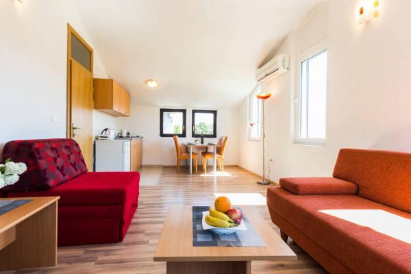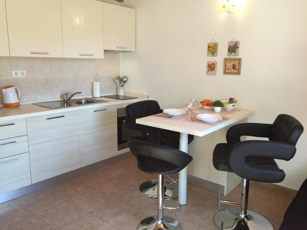 V bytě je dobře vybavené a pokoje jsou velké, takže ve společném obývacím pokoji bez problémů spaní 3 osoby. Vy, protože vše, co potřebujete v těsné blízkosti nepotřebují auto. Na pláži také poskytuje dostatek přírodního stínu, doporučuji rezervaci trajektu v obou směrech, ke kterému laskavě poukázal majitel bytu při rezervaci. V každém případě se vrátíme na ostrov Iz.