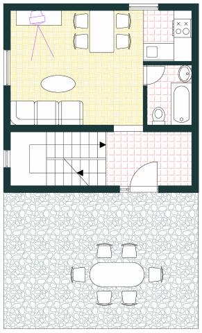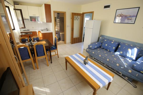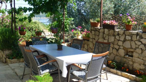 Apartmán jako samostatný obytný dům v klidné části Mali Iž, 200 metrů od přístaviště trajektů s odděleným parkovacím místem. Apartmán v přízemí má obývací pokoj s kuchyní a koupelnou, který lze použít jako samostatnou pokoj nebo studio apartmán, a v přízemí jsou 2 pokoje a koupelna. Samostatný dvůr s grilem pro celodenní pobyt. Vzdálenost od pláže je 5 minut chůze. Bezpečné lůžko pro člun a parkoviště pro stezky ,, wifi internet.