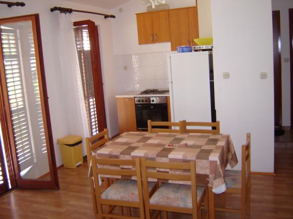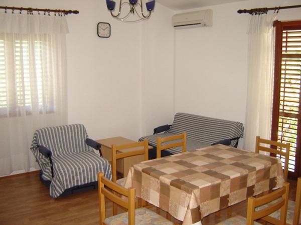 Dům se nachází v klidném a odlehlém místě pouhých 150 metrů od moře, centra a obchodu. Dveře domu jsou přístupné autem a parkování je zajištěno ve dvoře. Moderně vybavené apartmány s veškerým potřebným vybavením pro příjemný pobyt a příjemnou dovolenou. K dispozici jsou tři samostatné byty a větší společnost. Dva apartmány jsou dvoupokojové s kuchyňským a obývacím pokojem (A-1 a A-2), zatímco třetí (A-3) třílůžkové apartmá. Pro vaše vozidlo je bezplatné parkování ve dvoře.