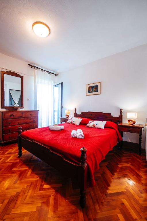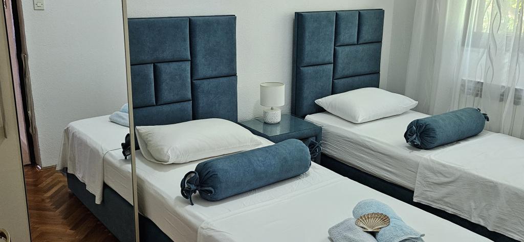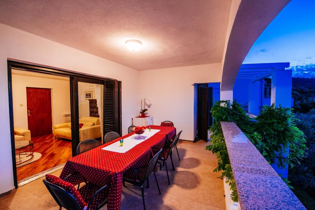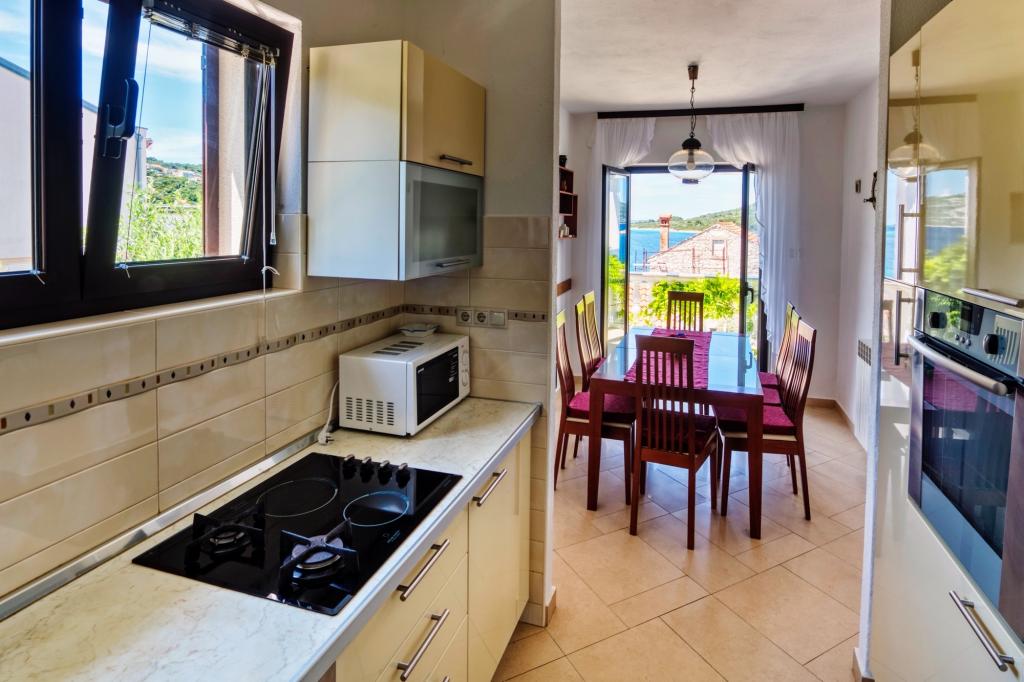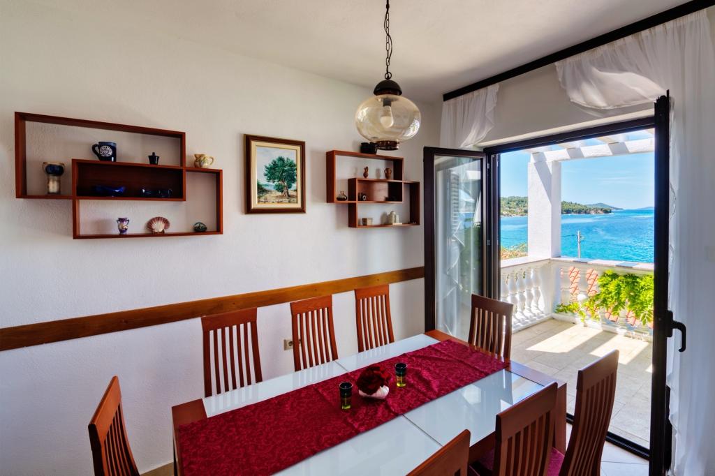 Rodinný dům Malinina se nachází v Mali Iž, velmi blízko moře. V domě je samostatná taverna s grilem, stolem a židlemi a garáž. Dvě terasy s výhledem na moře, Skládá se ze 2 podlaží. Spodní patro: 1 pokoj s 1 postelí (90 cm, délka 190 cm), 1 frank. postel (160 cm, délka 200 cm). Jídelna. Otevřená kuchyně (4 plotýnky, trouba, mraznička). Koupelna / WC. V horním patře: (venkovní schody) obývací pokoj / jídelna 45 m2, TV-satelit. přijímač. Vstup na terasu. 1 pokoj s 1 frankem postel (160 cm, délka 200 cm). Vstup na balkon. 2 pokoje se 2 lůžky (90 cm, délka 190 cm). Otevřená kuchyně (4 plotýnky, trouba, myčka, mraznička). Sprcha / WC. Parkování u domu na pozemku, Domácí mazlíčci nejsou povoleni.