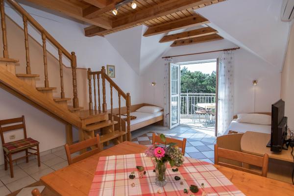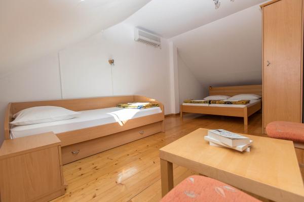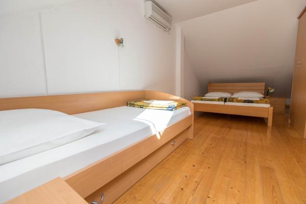 Ubytování je velmi dobré, paní si všímá všeho, ale domů jsme přišli dříve, protože třetí den dorazily dvě rodiny. Svítání nám projelo hlavu ve 12 hodin v noci, běhali, skákali, tahali židli, což znemožňuje spát. Ráno jsme mluvili s paní domácí, řekl jim. Další den se párty opět rozjela. Znovu jsme požádali hostitele, aby nic nedělal. Tu věc nevyřešil, ale peníze vám nevrátí, pokud půjdeme domů. Poté jsme přišli domů. Něco bych navrhl. V Njivicích bylo na chodbě psáno velkými písmeny do 22-08 prosíme o ticho. jdeme si sem odpočinout. Mimochodem, zarezervovali jsme si první patro, dostali jsme přízemí a dva dny v ubytování jsme cítili silný cigaretový zápach.