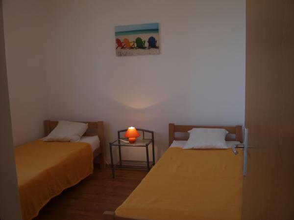 Apartmány se nacházejí přímo u moře, letovisko Jadrija (mezi Vodice a Šibenik). Objekt má tři samostatné bytové dva byty, každý 50m2 pro 4 osoby, jeden byt 60 m2 pro 5 osob. a ložnice s koupelnou pro 2 osoby. Každý apartmán má terasu s výhledem na moře.