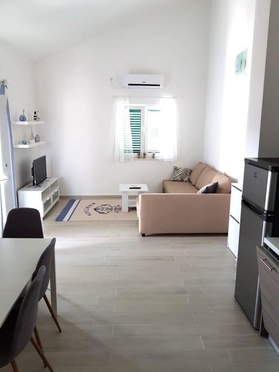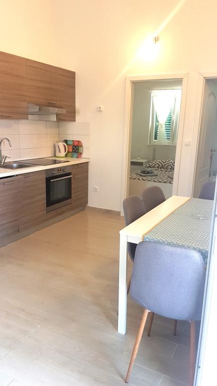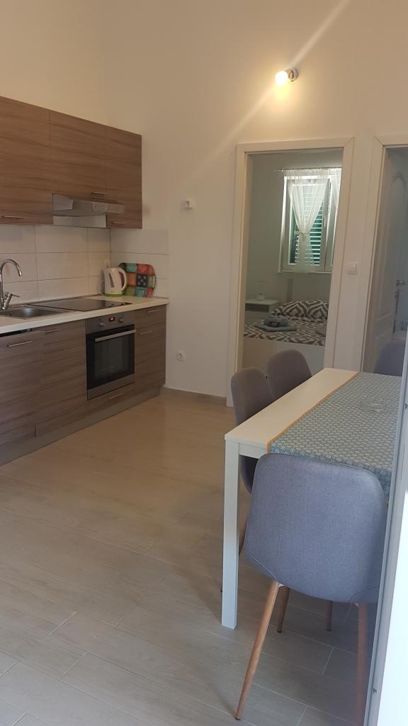 Apartmány v Jadriji se nacházejí ve čtvrté řadě u moře, tedy 2 minuty snadné chůze od nejbližší pláže. Apartmány jsou klimatizované a plně vybavené. Jednopokojový byt (A2+2) se skládá z ložnice, obývacího pokoje a kuchyně, chodby, koupelny a prostorného balkonu. Ložnice je pohodlná a tvoří ji velká manželská postel o šířce 1,6 m a velká šatní skříň. Dvoupokojový apartmán (A3+2) se skládá ze 2 menších ložnic (postel šířka 1,6m a postel 1,4m), obývacího pokoje a kuchyně, koupelny a prostorného balkonu. V obou obytných místnostech je rozkládací sedací souprava, vzniká tak další kvalitní a pohodlná postel o šířce 1,6 m na které se vyspí 2-3 osoby podle toho, zda se jedná o děti nebo dospělé. Kuchyně jsou plně vybaveny nádobím a standardními spotřebiči: trouba, varná deska, lednice s mrazákem, varná konvice. Ložní prádlo a ručníky jsou v ceně, využít můžete i žehličku na oblečení a fén.