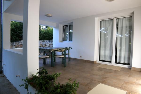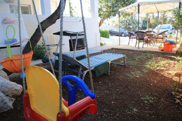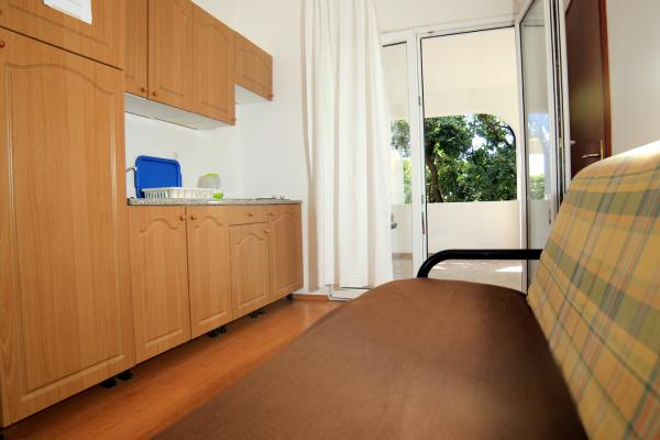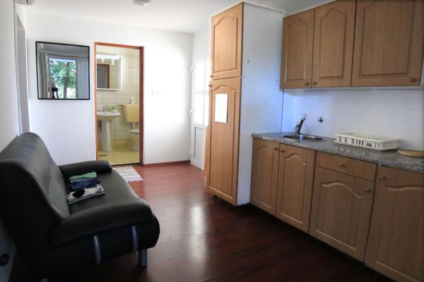 Každý apartmán má krytou zařízenou terasu a kuchyň s mikrovlnnou troubou. V koupelně je sprchový kout a bidet.