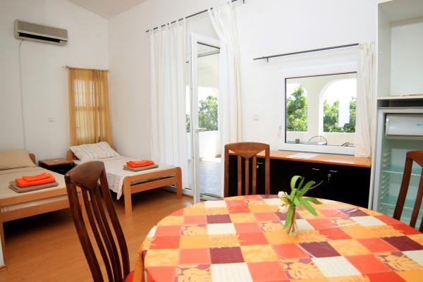 Na pláži je bar a restaurace. Novalja je vzdáleno 8 km od apartmánů Silva Zrce je 12 km daleko.