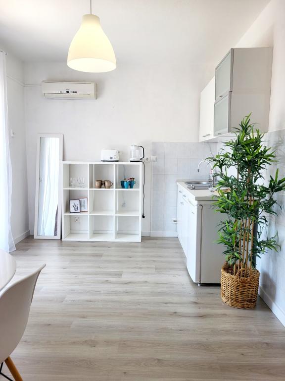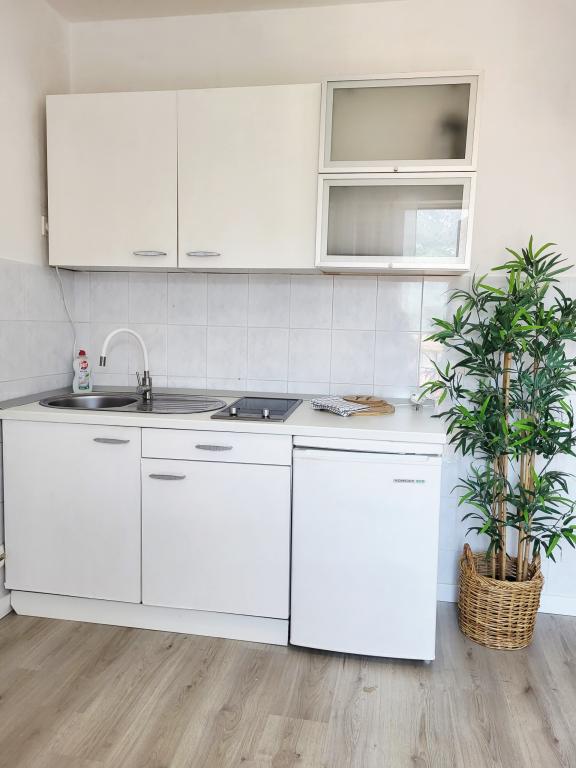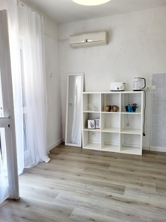 Dům s garsoniérami se nachází v klidné lokalitě s převážně rodinnými domy, přibližně 400 m od moře a první pláže a 500 m od centra. K dispozici je také soukromé parkoviště.