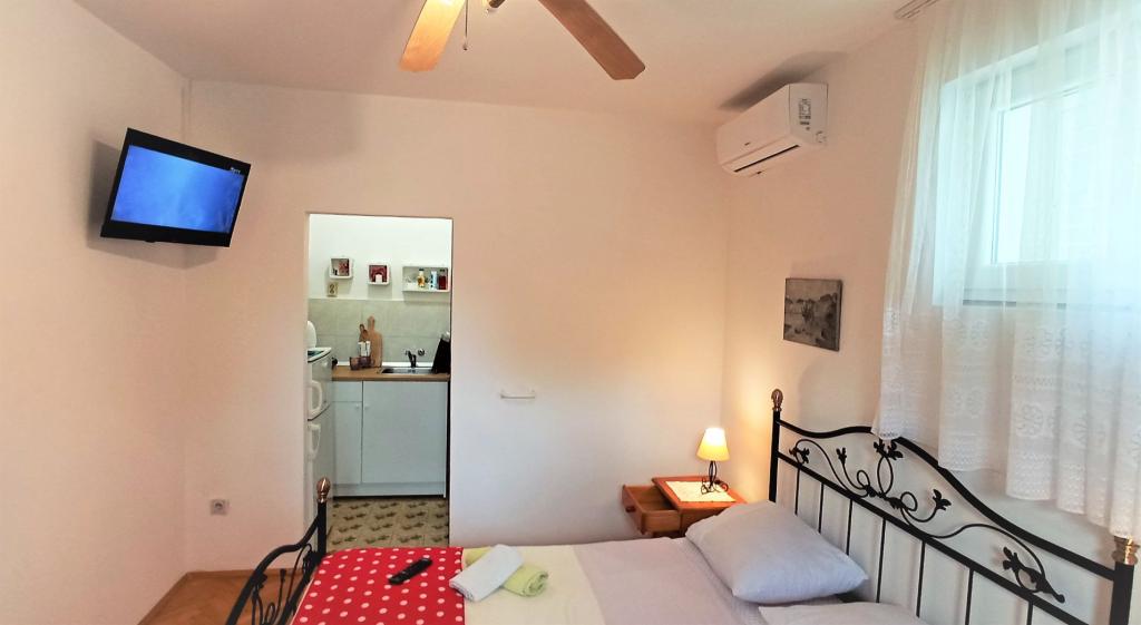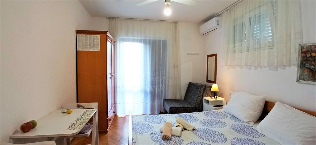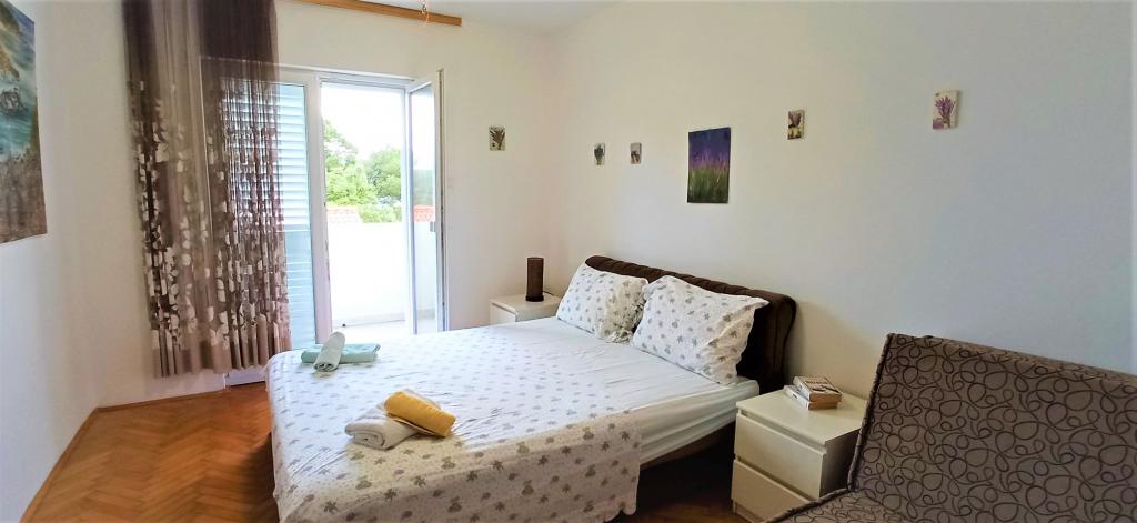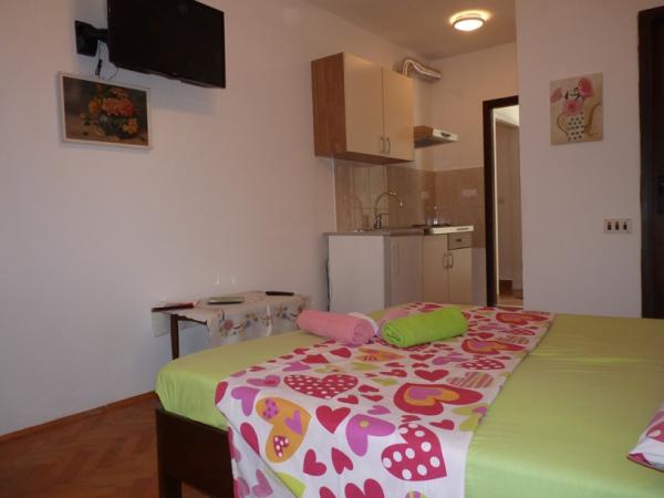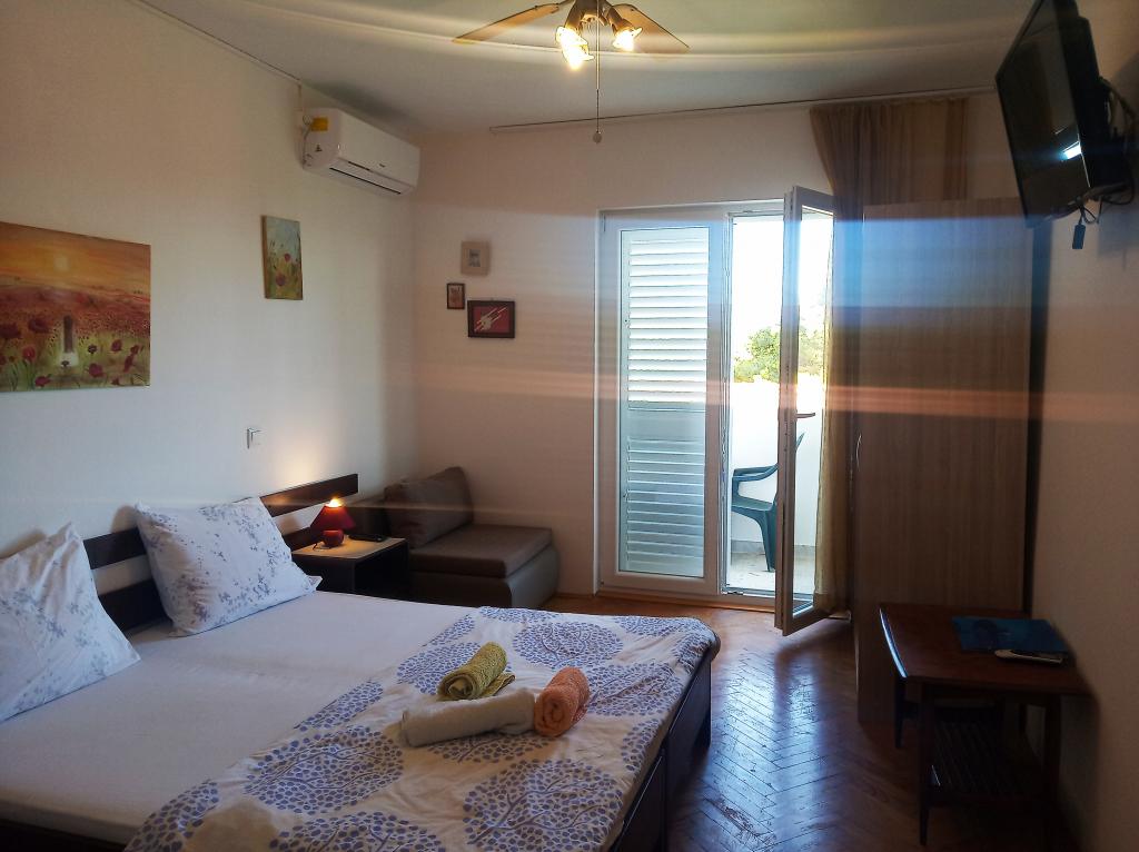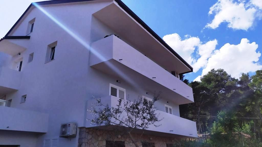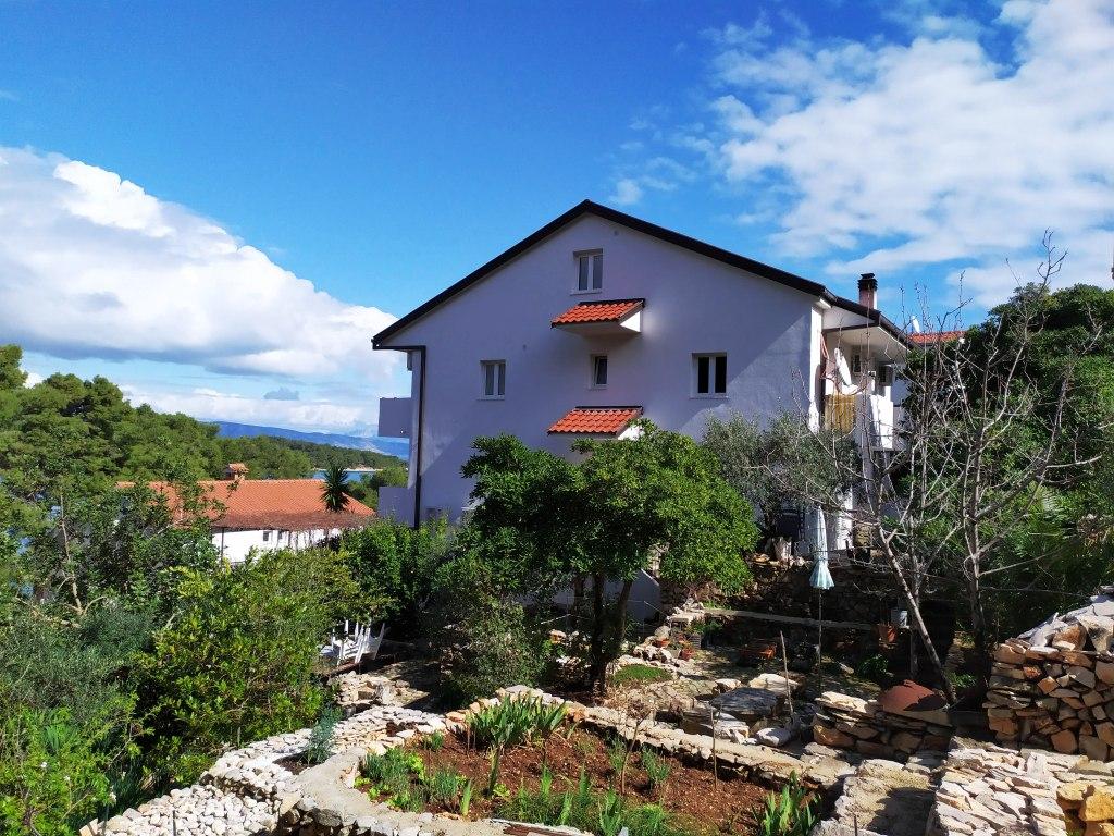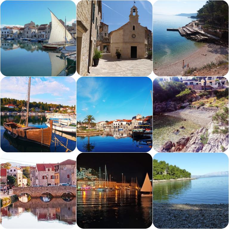 70 metrů od moře. Apartmány se nacházejí mezi Jelsa a Vrboska, ostrov Hvar, na klidném místě s několika oblázkovými plážemi a jednou písečnou pláží poblíž. V našem domě nabízíme 3 studio apartmány. Každý apartmán má ložnici, koupelnu a kuchyňský kout a stůl a židle v přední části bytu vedle zahrady. Studio apartmán 3 má velkou terasu 2 pokoje. Každý z nich má vlastní WC, kuchyň a balkon se stolem a židlemi a výhledem na moře. Je také možné si pronajmout obě místnosti jako apartmán protože mají jeden společný vchod, který je oddělen od ostatních bytů VelkýApartmán -AP4 má dvě ložnice, velká kuchyň s jídelnou a obývacím pokojem, dvě koupelny. Každý pokoj má postel pro dvě osoby. Jeden z pokojů má také přistýlku a balkon s stůl a židle pro 2 osoby. Z balkonu je výhled na moře. V obývacím pokoji se nachází LCD TV a pohovka, která může být rozšířena na postel pro 2 osoby. V přední apartmánu, mezi olivový strom je terasa se stolem a židlem