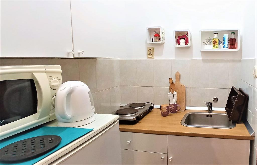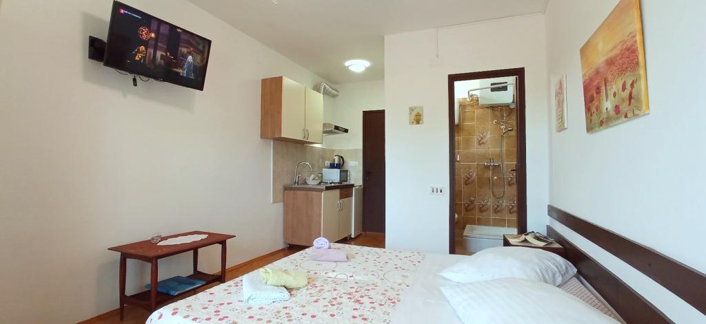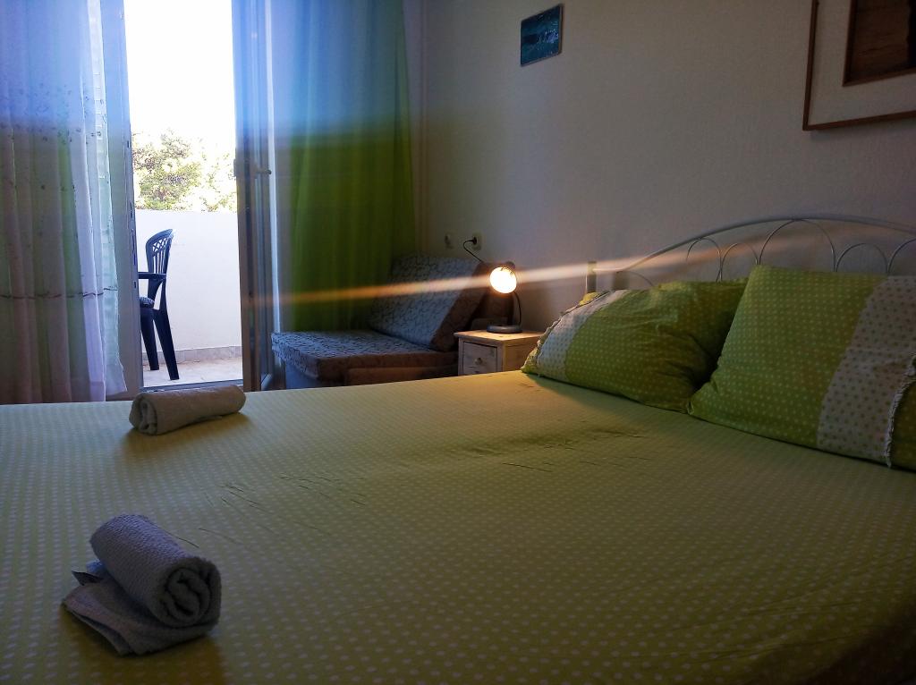 Pěkně zařízené a plně vybavené pokoje. Opravdu blízko pláže. Majitel říká, že vzdálenost k moři je 80 metrů, ale je menší