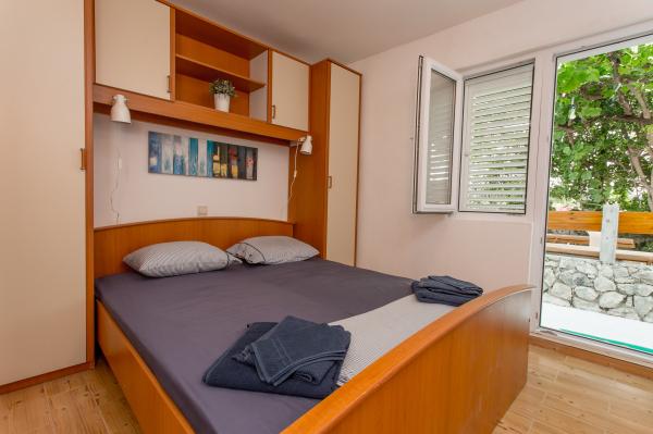 Tento krásný malý byt na poslední chvíli rezervovali jsme byli velmi rádi, že si to jen tak hezky, jako fotografie naznačují. Byt se nachází v krásné chráněné, soukromé zátoky s klidné vody a krásné koupání. Žádní turisté, jen místní obyvatelé mají příležitostný plavat nebo znárodnit ve večerním slunce. Pohupující se čluny, vodní a dokonale se nachází pontonu, aby pro relaxační prostředí. Borjena, majitel bytu, bydlí hned vedle a byl fantastický a velmi velkorysý hostitel. Každý den, že by nám přinese místní pochoutky, jako je čerstvě grilované sardinky, fíky, šťavnaté broskve a domácí meruňkový koláč. Delicious! I když žije v těsné blízkosti bytu vždy pocit, že jsme dostali prostor a soukromí během našeho pobytu. Ačkoli Borjena mluví trochu anglicky, tam byl vždy někdo po ruce (nebo Google Translate), aby nám pomohli zjistit jakékoliv informace, které jsme potřebovali. Samotný byt byl velmi čistý a měl všechno, co 'd muset za týden ' s dovolenou. Byli jsme bez dopravy, ale autobus byl velmi pohodlné (i když cesta je docela hlasitý), a to je snadné se dostat do Splitu a Omiše - asi 20 minut. Existuje jen několik restaurací v okolí, ale Split a Omiš mít spoustu slušných míst k jídlu. I když jsme často vařené ryby a zeleninu na venkovní gril. Našli jsme také umístění skvělé místo, aby se zakládaly na zkoumání více turistické ostrovy Brač a Hvar. Pokud hledáte pro relaxaci a autentickou chorvatskou dovolenou pak je to místo, kam jít!