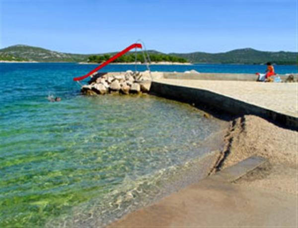 Apartmány Slavica se nacházejí v blízkosti přístavu ACI Jezera. Apartmány 1, 2, 3 a 4 mají jednu ložnici, obývací pokoj se dvěma přistýlkami, kuchyň, koupelnu a terasu. Apartmán 5 má kamenný dům s krbem, dvě ložnice, kuchyň a koupelnu. Na pláž dojdete za 3 minuty. Všechny apartmány mají parkování a internet zdarma (WI-FI). Připojené obrázky jsou jen 2 minuty chůze od pláže od bytu. Pláž je vhodná pro malé děti, protože má upravené vchody, stín a malé dětské hřiště. Naproti této pláži je promenáda a pláž, která vede z Jezera do Tisna, a je 10 minut chůze od bytu. Nedaleko jsou také zátoky Koromašna a Sveti Nikola, které nejsou turisticky uspořádány