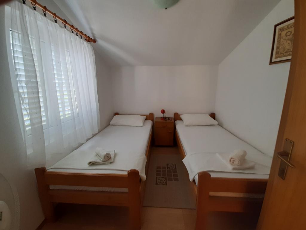 Apartmány Cvrčak se skládají ze dvou studio apartmánů v prvním a druhém patře. Oba mají stejné rozložení pokojů a skládají se ze dvou ložnic, z nichž jedna má manželskou postel, kuchyně propojené s obývacím pokojem a koupelny. Do jedné místnosti se vstupuje z přízemí. obývací pokoj a ve druhém od schodiště. Oba obývací pokoje se otevírají na prostorné terasy s výhledem na moře, město a přístav. Za domem je hostům k dispozici terasa s grilem. V blízkosti apartmánu se nachází pláž s vybavením pro děti, 3 minuty chůze, obchod 10 minut chůze a ACI Marina Jezera a škola plachtění 1 minutu chůze. V blízkosti je několik oblázkových a betonových pláží a na ostrově je také známá písečná pláž Slanica. Krásná promenáda spojující Jezera a Tisno je 10 minut chůze od hotelu, vhodná pro pěší i cyklistické výlety. V blízkosti apartmánu jsou národní parky Kornati a Krka. Doporučení ubytování pro účastníky školy plachtění. Apartmány jsou plně vybaveny a parkování je zajištěno před budovou.