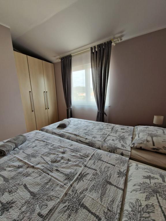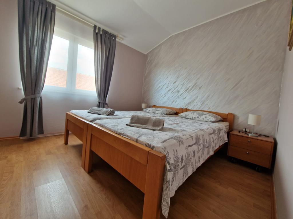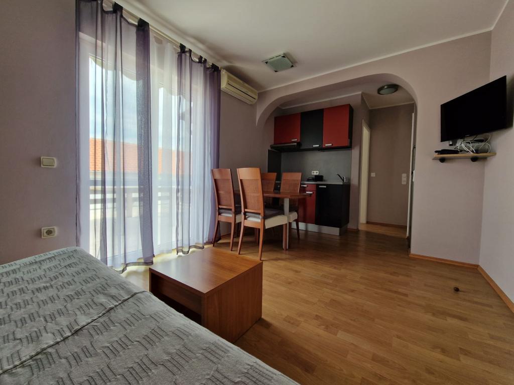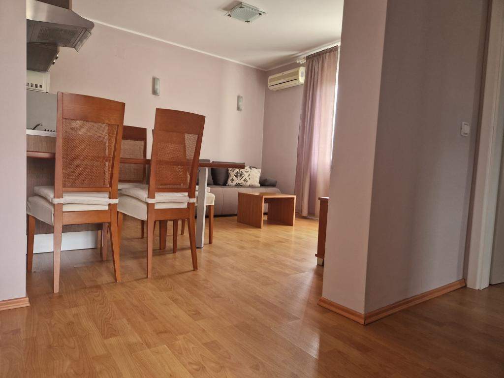 Vkusně zařízené a plně vybavené apartmány v klidné zóně, cca 400 metrů od pláže a 200 m od centra. Dům má 2 apartmány, a to jak v prvním patře. Každý z nich má jednu ložnici obývací pokoj (2 ze 2 postele), kuchyň, koupelna a terasa. Hosté mají k dispozici pračka, mikrovlnná trouba, kávovar, satelitní TV, připojení na internet, gril a parkoviště. Apartmány jsou klimatizované, velmi pohodlné, s velkými terasami a krásným nábytkem. Pobyt v tomto domě je určitě potěší.