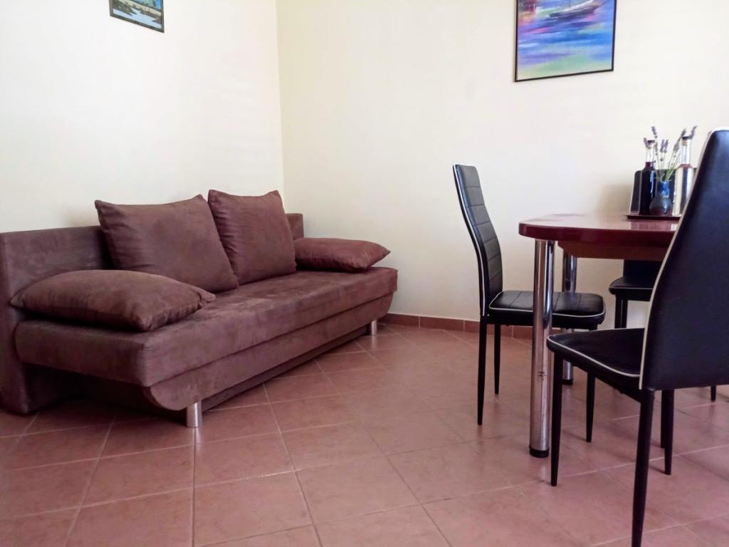 Plně vybavené apartmány v klidné oblasti nacházející se přibližně 5-10 minut chůze od centra města a místní pláže. Apartmány se nacházejí v přízemí soukromého domu, zatímco majitelé bydlí v 1. patře. Apartmány jsou mimořádně vhodné pro ubytování rodin s malými dětmi, protože zařízení má velký dvůr a mini dětské zařízení.