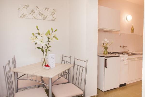 Poloha zařízení je dobrá - v centru Jezera, v blízkosti veškerá občanská vybavenost (obchody, pláže, restaurace...). Parkování je zajištěno (na celém ostrově), což znamená hodně. Byt je skromně zařízen, nábytek je poměrně starý a prakticky bez balkonu, protože se nachází uvnitř budovy s výhledem na schodiště a sousední byt. Hostitelé byli velkorysí, laskaví a po celou dobu k dispozici. Všechno nás přivítalo čistě.