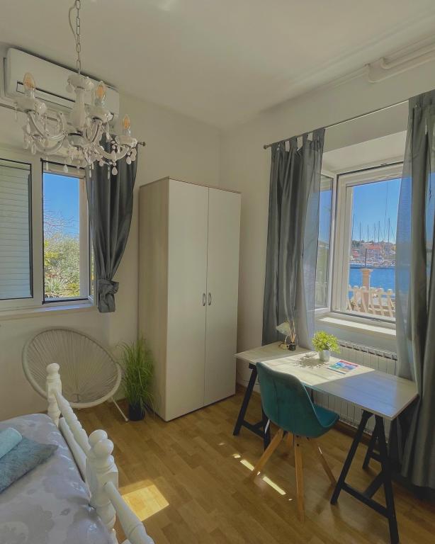 Užijte si krásný výhled na moře, dobré počasí a kouzelné západy slunce v apartmánu, který se nachází jen pár metrů od moře, ve skvěle umístěném domě. Místo, kde můžete vidět, cítit a cítit Dalmácii. Apartmány se nacházejí přímo u moře a nejbližší pláž je vzdálena pouhých 100 metrů. Nabízíme vám kotviště pro lodě a parkování zdarma.