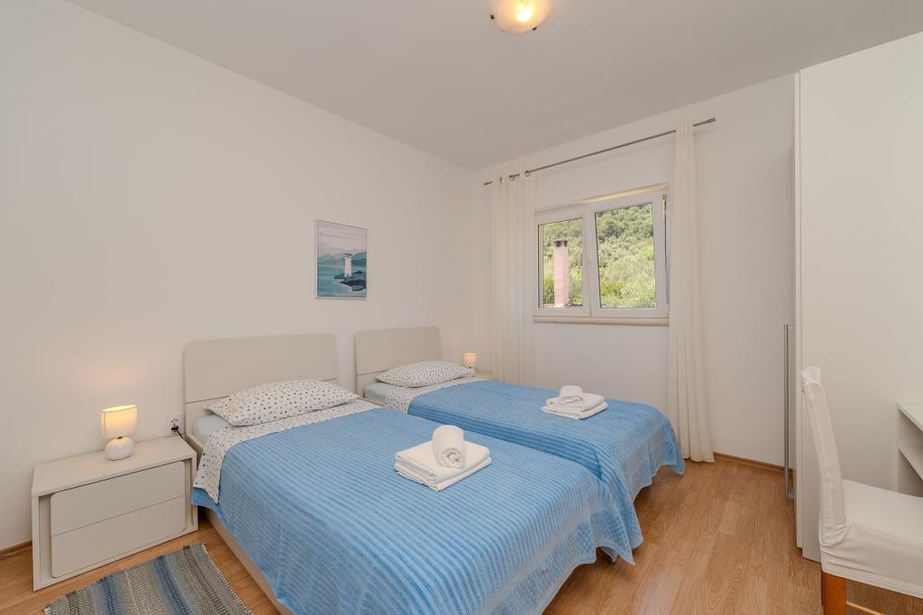 Apartmány Mirela se nacházejí mezi Kali a Preko na ostrově Ugljan. Dům se nachází v první řadě k moři. Apartmány se nacházejí v prvním patře rodinného domu a oba apartmány mají krásný výhled na moře. Trajektový přístav Preko je vzdálený pouhých 5 minut chůze.