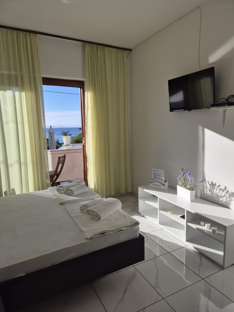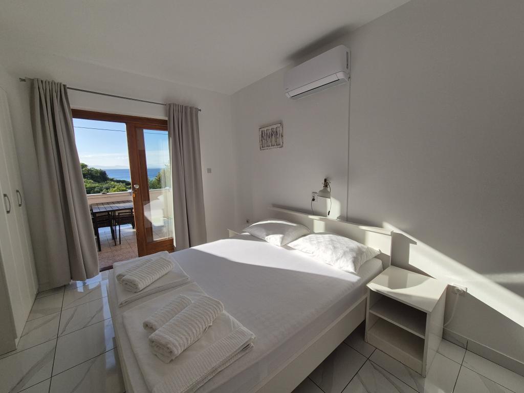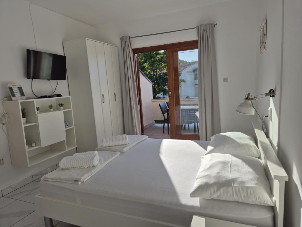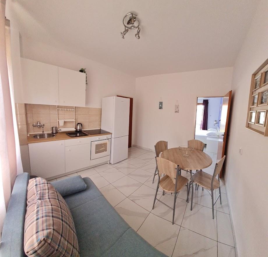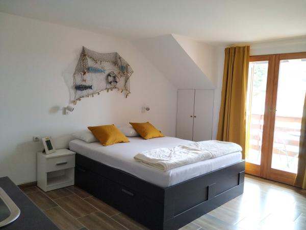 Apartmány se nacházejí v klidnější a izolované části ostrova Rab, ohraničené malým počtem domů, téměř neznatelným provozem a minimálním kontaktem s vnějším prostředím, což poskytuje pocit dokonalého klidu a naprosté relaxace. Vás i Vaši rodinu přivítá krásný a uklizený prostor s přímým výhledem na moře, který je vzdálený pouhých padesát metrů (pěšky) s několika druhy pláží v okolí, ideální pro manželské páry s dětmi. Dům se skládá ze dvou apartmánů (každý pro čtyři osoby) a dvou studiových apartmánů (každý pro tři osoby). Vše bylo v roce 2018 kompletně zrekonstruováno. Apartmány a studia jsou plně vybaveny a zahrnují satelitní TV, internet, klimatizaci a hlídané parkoviště. Největší předností naší oblasti je dokonale klidné prostředí, které doprovází zvuky vrčení, racků, vln a občasné turistické lodi. Provoz v okolí bytu je velmi vzácný a nedochází k přetížení turistů, aut a zařízení. Děti můžete bez obav poslat plavat a hrát si.