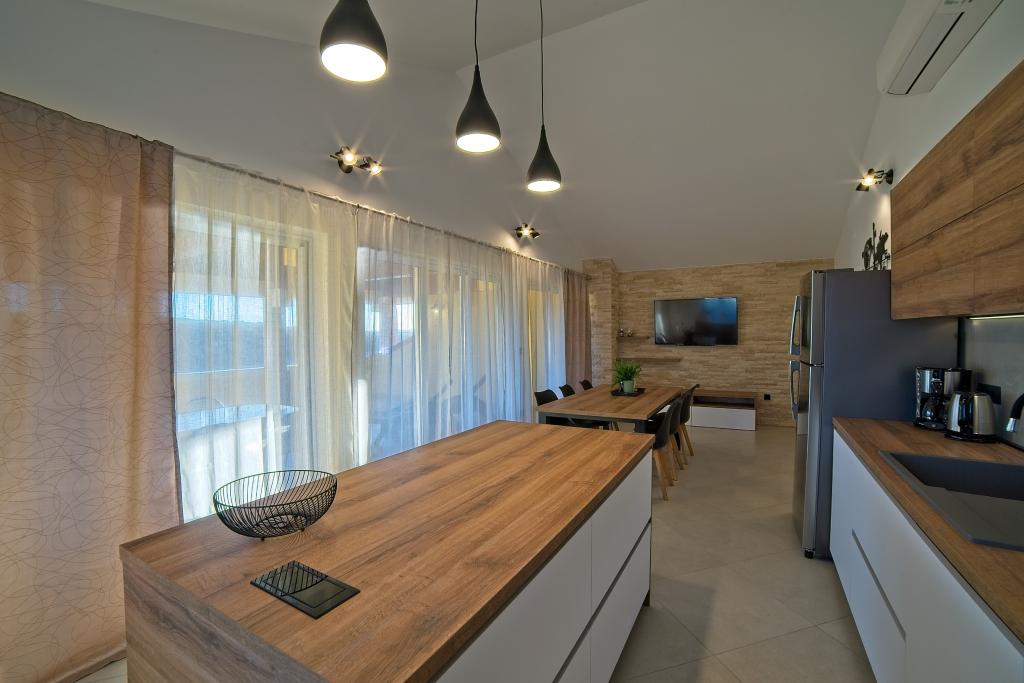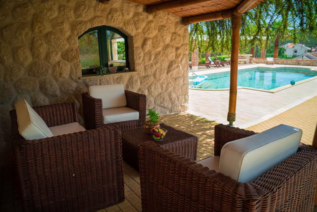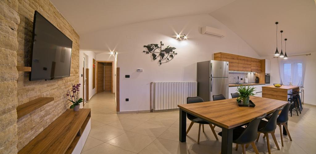 Pobytová taxa je v ceně.Na velké ploše nad domem se rozkládá krásná zahrada pro delší pobyt ve večerních a odpoledních hodinách. K dispozici je dětská herna, bohatý stůl a bohatý a dobře vybavený gril, vybavená kuchyňka s toaletou a několik zahradních stolů a židlí. Moderní vybavený venkovní bazén, velikost 9, 50 x 5, 20 metrů, hloubka 1, 50 metrů, vybavený lehátky a slunečníky a občerstvením. Z krásné zahrady a oblasti opalování kolem bazénu vás ohromí výhled na moře. Možnost výletů lodí po ostrově Rab, piknik, panoramatické výlety, výlety lodí na sousední ostrovy Pag, Lošinj a Krk. Zajišťujeme kotvení lodí pro jachtaře a pro naše nejmladší, šipky, stolní fotbal a vzdušný hokej.