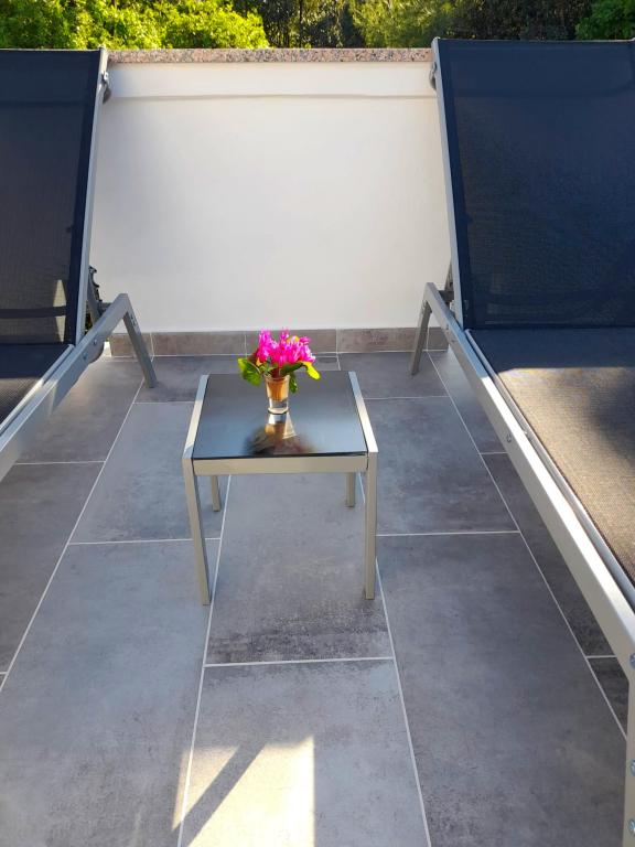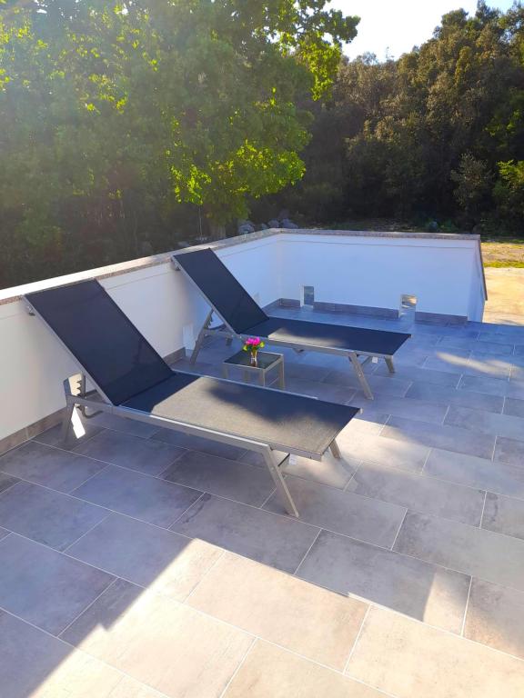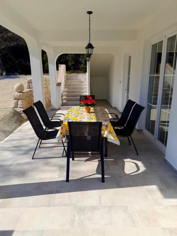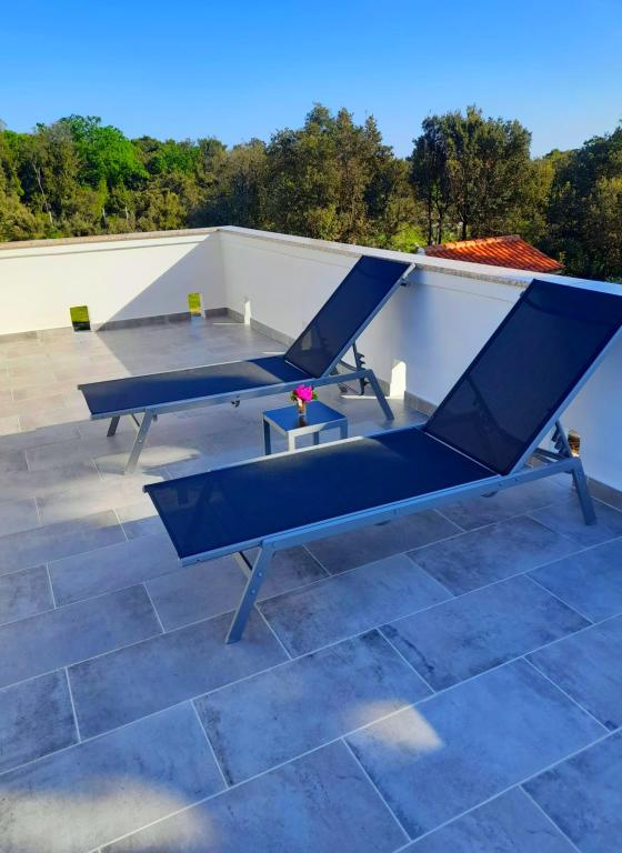 Tento apartmán se nachází v lesní oblasti a v bezprostřední blízkosti pláže a moře. Je to ideální místo pro strávení odpočinkové dovolené v klidu a pohodě. Apartmán A4+2 (až 6 osob) se nachází v prvním patře a je velký asi 100 m² a skládá se z následujících místností: plně vybavená kuchyň s obývacím pokojem s klimatizací, TV s plochou obrazovkou se satelitními programy a rozkládací pohovkou pro dvě osoby (kde mohou spát 2 osoby), 2 ložnice s manželskými postelemi (šířka 1,80 m) a 2 koupelny se sprchou. Byt má balkon, terasu u vchodu, střešní terasu, vlastní gril a parkoviště. Nejbližší pláž je vzdálená cca 700 metrů a dá se na ni dojít pěšky jen na 10 minut (nejrychlejší je lesní zkratka).
