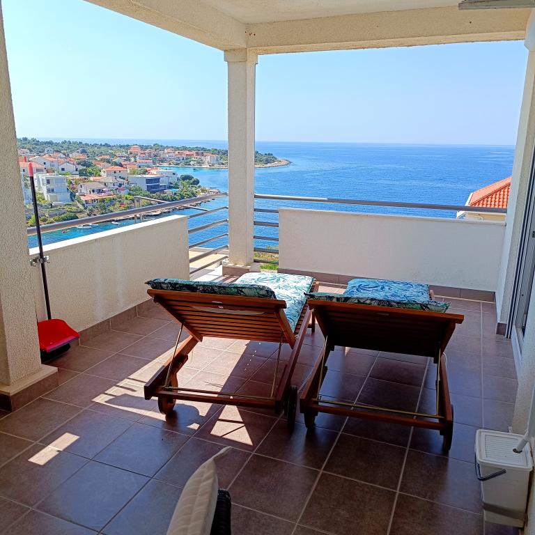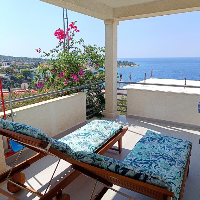 Apartmán MATAN (Rogoznica-Kanica) Komfortní a plně vybavený apartmán, Wi-fi, Klimatizace, Gril, Parkování, apartmán má vlastní samostatný vchod a vlastní velkou krytou terasu 18 m2 s krásným výhledem na moře, pláž je 70 metrů daleko. Extrémně čisté a průzračné moře, klid, ticho bez davů a hluku aut a zachovalá příroda nabízí našim hostům kompletní dovolenou jak pro rodiny s dětmi, tak pro ty, kteří rádi tráví dovolenou v INTIMATE.Apartmány mají gril a bezpečné parkování vedle do domu. V Rogoznici, Primoštenu a Trogiru najdete vše pro večer, zábavu a nákupy. Pláže jsou oblázkové, kamenité a betonové. Místo vhodné pro milovníky rybaření, procházek a rekreačního běhání. Vítejte