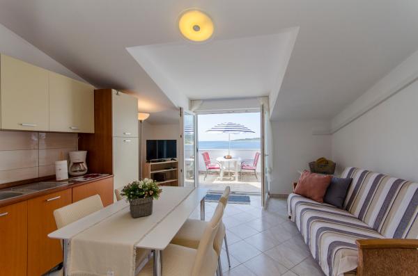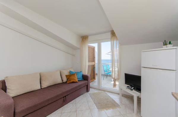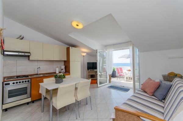 Byt byl super čistý a vybavený vše, co potřebujete. Klimatizace byla skvělá. Terasa byla krásná, aby seděla venku. Pláž je skvělá, každý host má plážovou židli s deštníkem první řadu u moře. Byli často v Kanici pěkné malé klidné místo K dispozici je také soukromé parkoviště. Ivanka majitelka byla skvělá, velmi milá vždy v pozadí, ale vždy tam, kdybyste něco potřebovali. Také získal výborný domácí dort. Ivanka také mluví skvěle německy. Byla to skvělá a relaxační dovolená Děkuji Susanna Uwe Tysonové