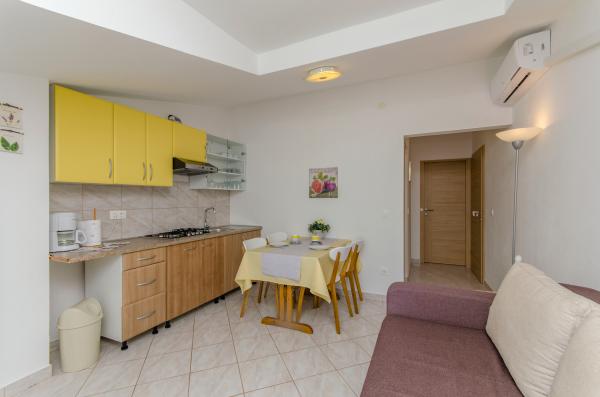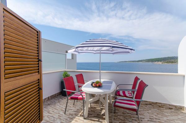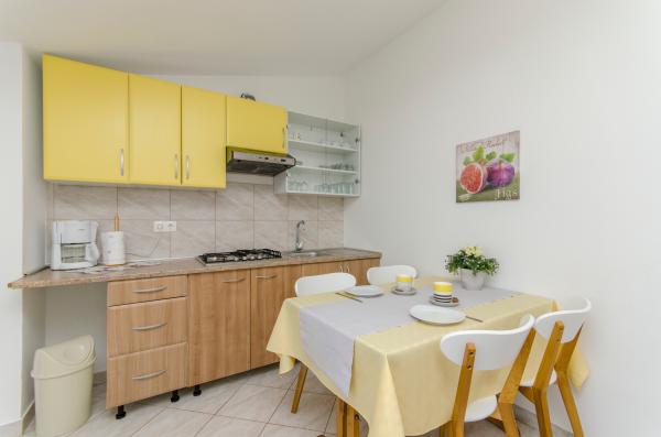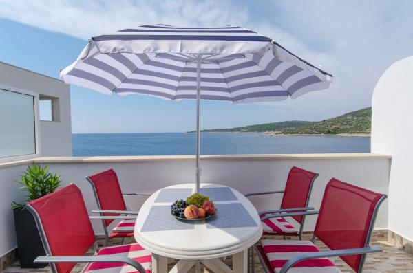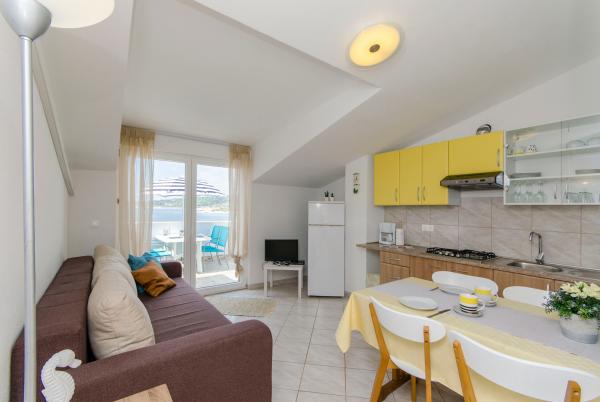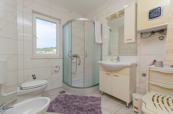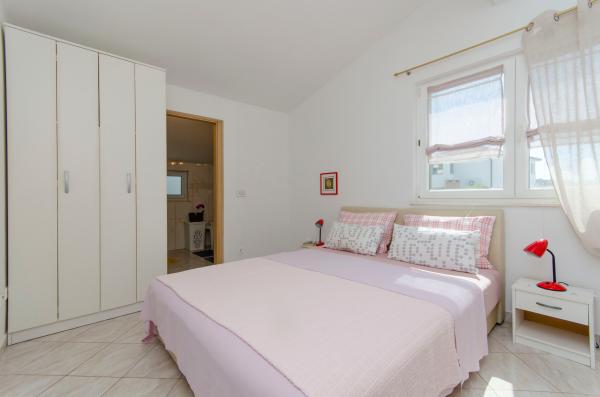 Ideální místo k odpočinku s úžasným výhledem na moře - je to dobrá volba pro každého, kdo hledá odpočinek, klidné místo mimo město, hlučné bary a restaurace, ale v okolí je malá restaurace s denním menu, pizzy a zmrzliny , je zde také každý den pekař s čerstvým chlebem a pekárenskými výrobky. Malý obchod je asi 1 km daleko. Byt byl čistý s prostornou koupelnou, pohodlnými postelemi, plně vybavenou kuchyní, večeří na balkóně při sledování západu slunce - byl to opravdu pěkný zážitek! Pláž je blízko, čisté moře. Okolí domu bylo čisté, pečlivě udržované, zeleň, voňavý levandule. Parkování pro auto bylo ve dvoře majitelů a bylo chráněno před sluncem. Přátelští majitelé, péče, ale plně respektovali naše soukromí. Paní Ivanka nám několikrát nabídla chutné domácí pečivo. Byt má vše, co potřebujete, včetně AC a rychlé wifi. Byli jsme velmi spokojeni, v červenci 2019 jsme zde strávili 2 týdny. Dobře Děkuji! Peter a Gabriela, Slovensko