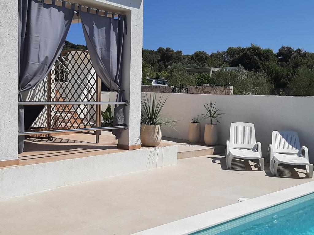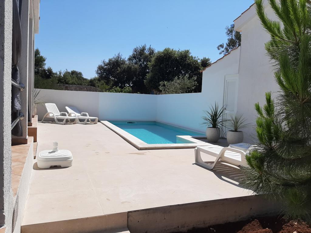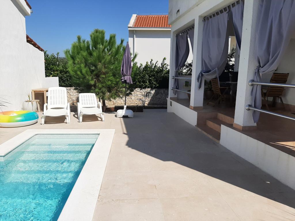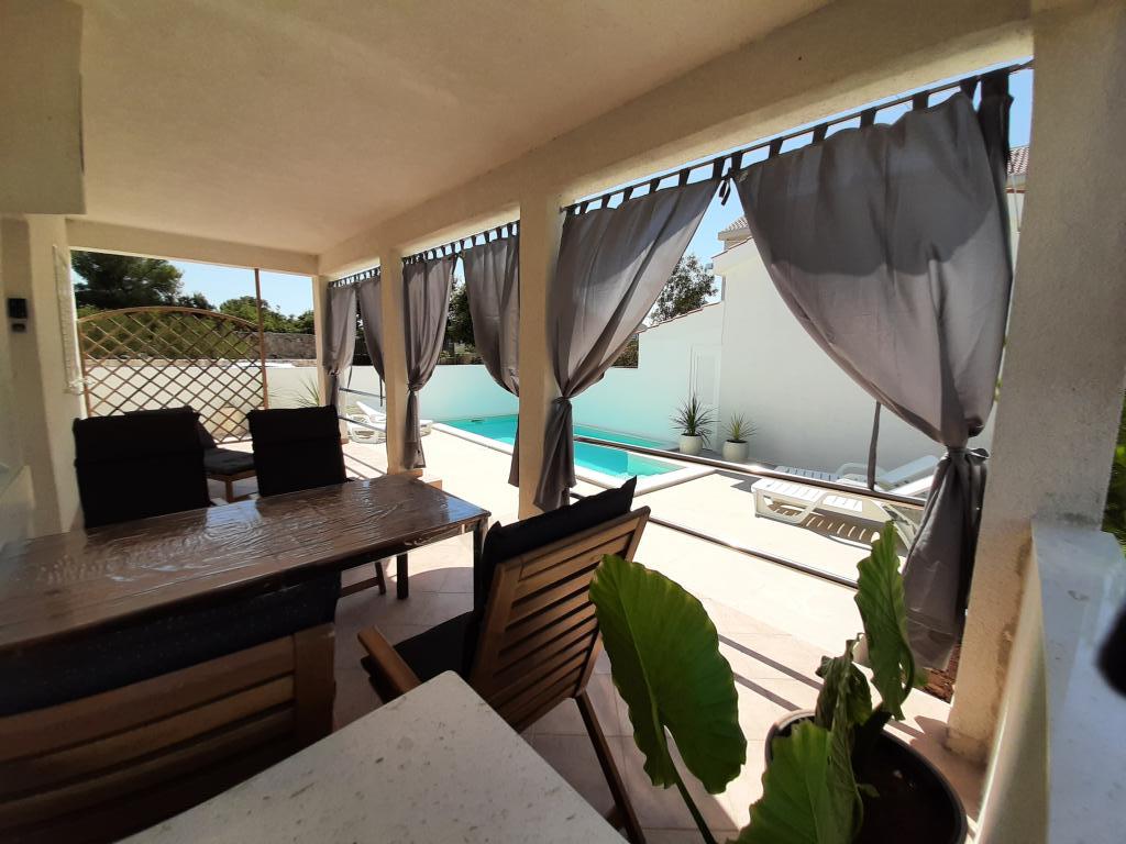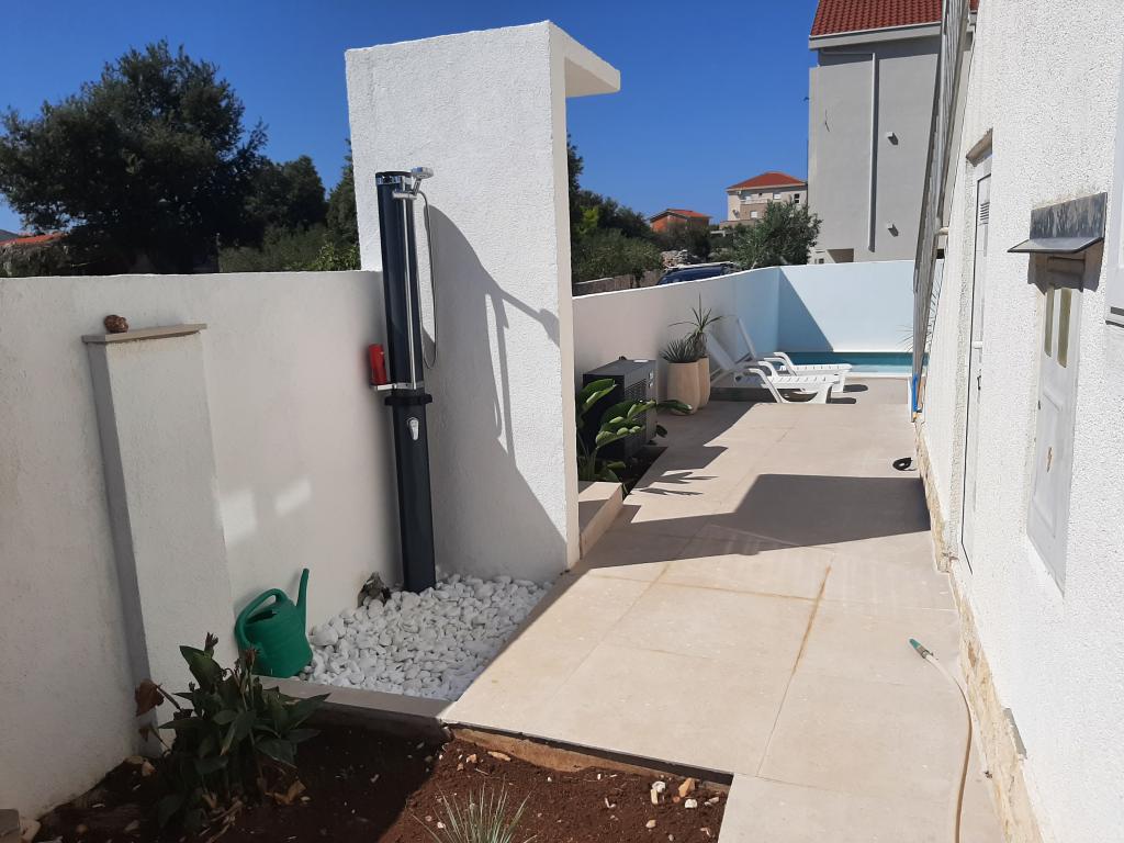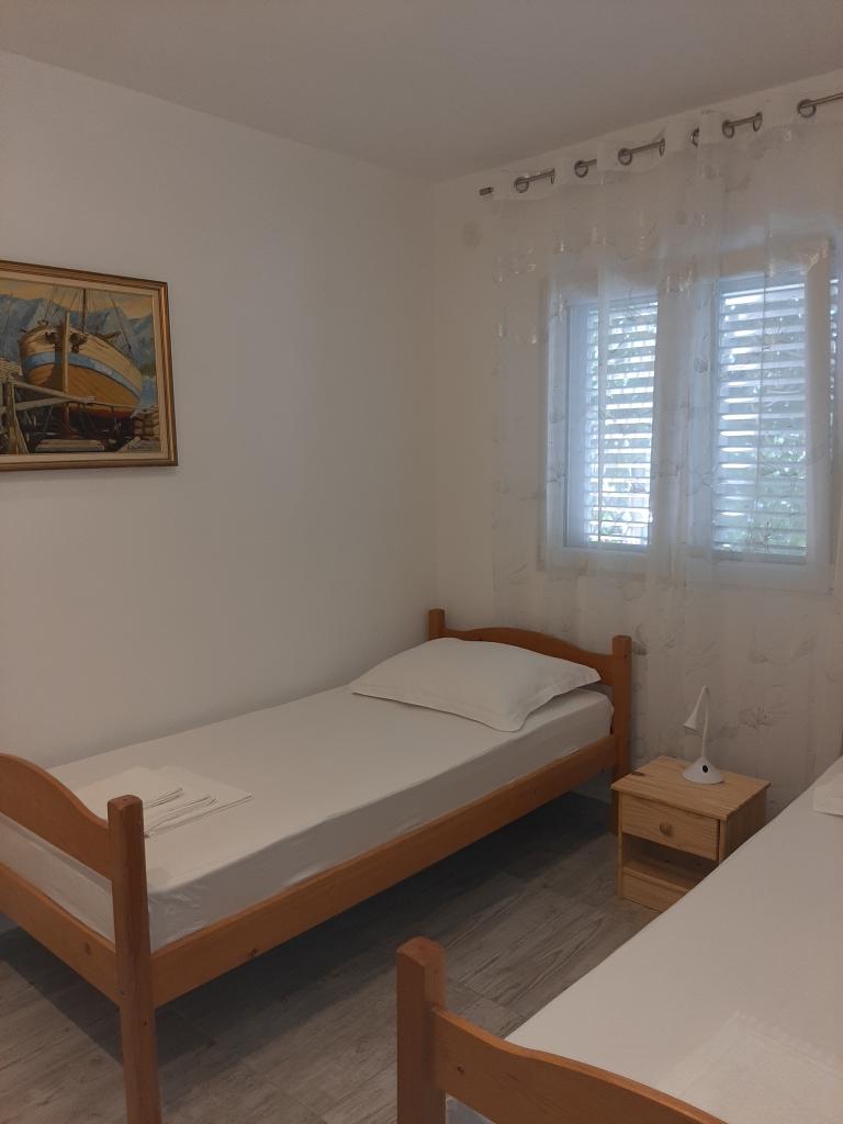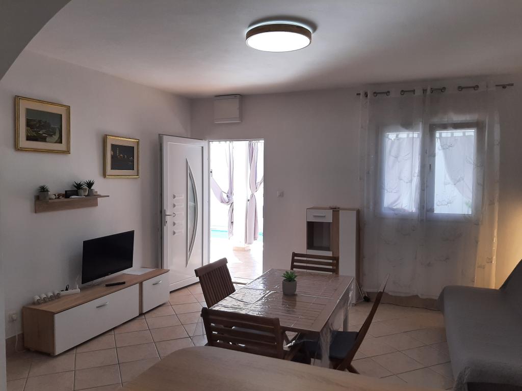 Malá prázdninová vesnička Kanica je 10 km od Rogoznice, 20 km od Trogiru, 30 km od Šibeniku...nejbližší oblázková pláž je vzdálena 150 m (restaurace a bar u pláže) a celý poloostrov v okruhu necelých více než 500 m je neobydleno. Krásné pláže, čisté moře a příroda. Obchod je vzdálený 3 km a kolem 8. hodiny ráno přijíždí před dům dodávka se základními potravinami (chléb, mléko, ovoce, zelenina). Vedle domu je parkoviště a gril pro použití hosty. Dům má dva samostatné dvoupokojové byty (jeden v přízemí pro 5 osob a druhý v patře pro 6 osob), každý s uzavřeným prostorem 48 m2 s terasami 20 m2. Každý apartmán má jedno (1) parkovací místo.