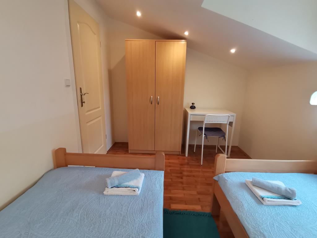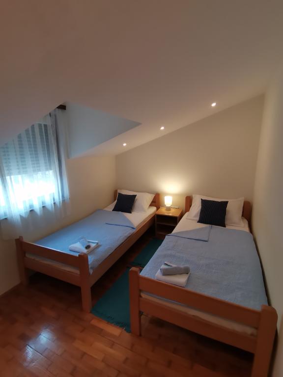 Prostorný, moderně vybavený apartmán v klidné části Ribarica, v bezprostřední blízkosti Karlobagu, s výhledem na Jaderské moře na jedné straně a na Velebit na straně druhé. Poloha apartmánu vám umožní užít si dovolenou v křišťálově čistém moři a vzduchu, který je mezi mořem a horou, ideální pro lidi, kteří mají problémy s dýcháním. Klidné prostředí poskytuje skvělé podmínky pro odpočinek při nasávání slunečních paprsků a útěku od každodenního shonu. Zařízení se nachází 3 minuty chůze po soukromé cestě k moři a na pláž. Byt se rozkládá na ploše 104 m2, který obsahuje dvě ložnice po 2 lůžkách, prostornou kuchyň s jídelnou, prostorný obývací pokoj se dvěma přistýlkami, dvě koupelny, dvě chodby a prostornou terasu s výhledem na moře. K bytu náleží dvě parkovací stání. Byt je klimatizovaný se dvěma klimatizacemi. Kombinace moře a hor nabízí možnosti koupání, potápění, půjčení lodiček k návštěvě okolních pláží a zátok, turistiku, cyklistiku a procházky po promenádě u moře.