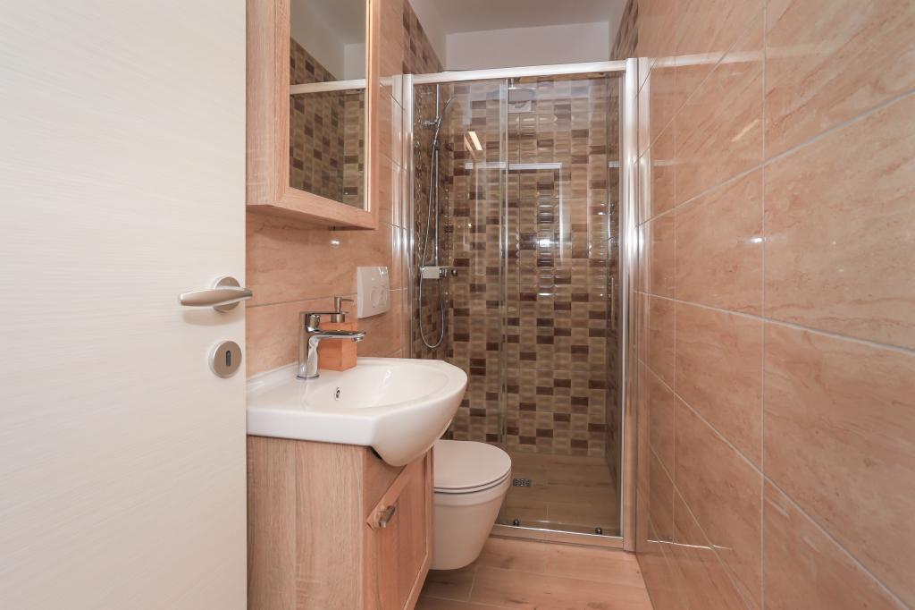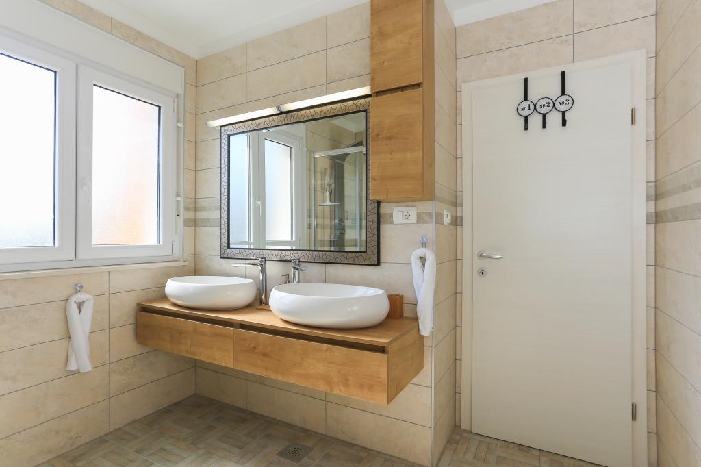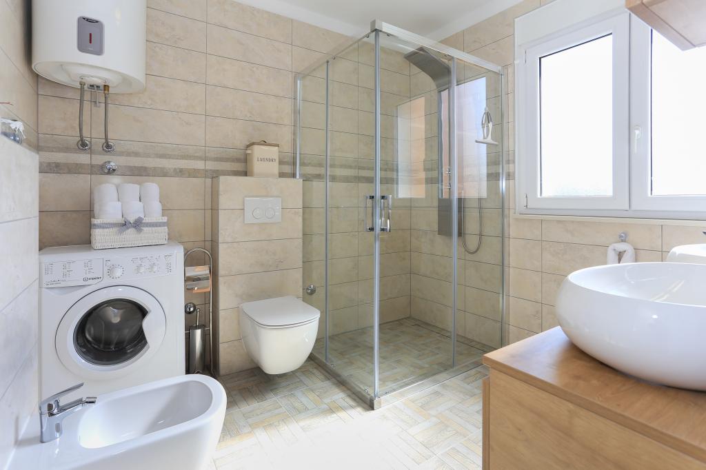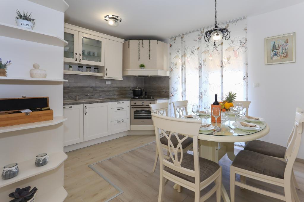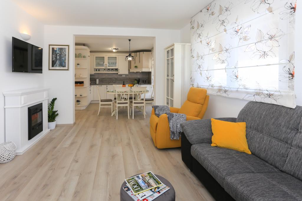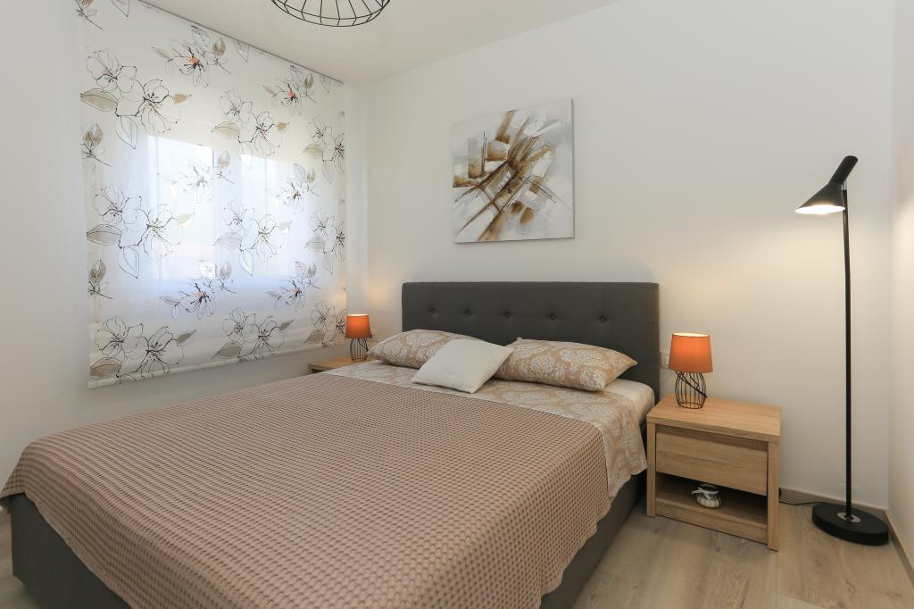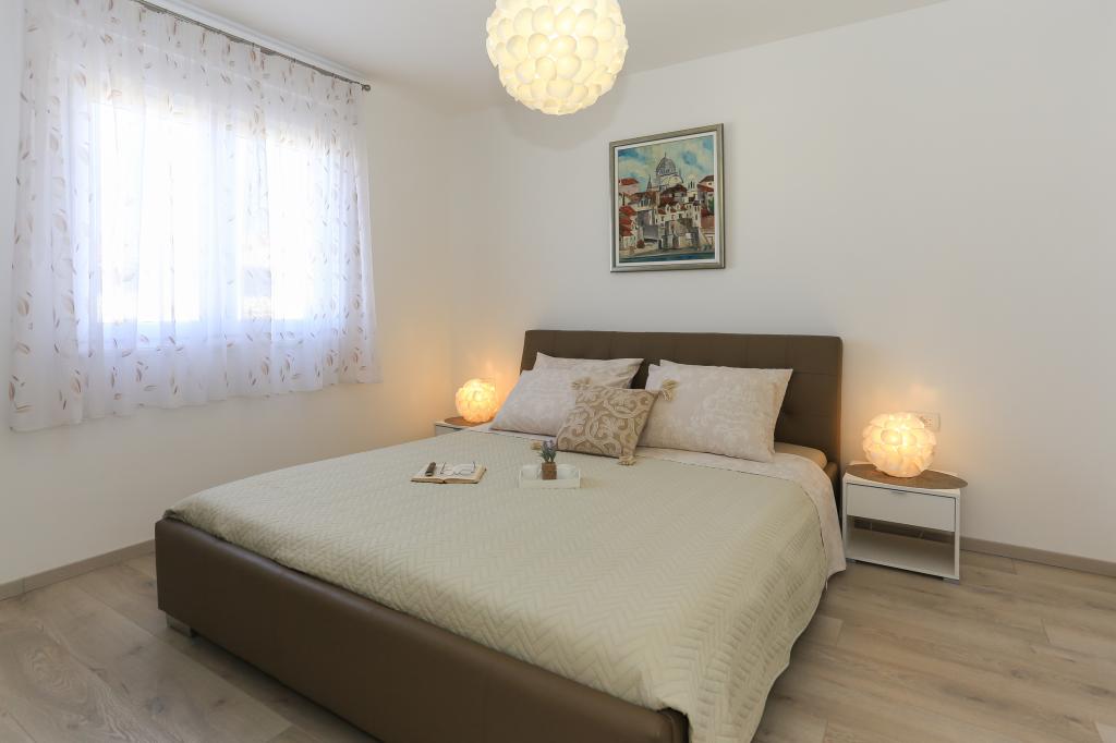 Tento zcela nový apartmán se nachází v centru Kaštel Gomilice a je plně vybaven pro váš pohodlný pobyt. Jen pár minut odtud se nachází Marina Kaštela, autobusové nádraží (100 metrů) s přímým spojením do Splitu, na letiště a také do Trogiru. Také pouhých 400 metrů odtud se nachází vlakové nádraží s linkou, která vás zaveze přímo do centra Splitu (městský přístav a autobusové nádraží), což je skvělé pro návštěvu okolních ostrovů. Pár minut chůze od apartmánu se nachází oblázková pláž s bary a dalším vybavením (trampolína, houpačky atd.). Naši hosté mají k dispozici soukromý vchod na vlastní parkoviště, takže máte naprosté soukromí a bezpečí. Apartmán se skládá z velkého obývacího pokoje propojeného s kuchyní a jídelnou (35 m2). Má 3 ložnice (dvě s manželskými postelemi - 1,6x2,0m), zatímco jeden pokoj má velkou manželskou postel (1,8x2,0m) a jedno samostatné lůžko (0,9x2,0m). Součástí apartmánu jsou také 2 kompletní koupelny se sprchami. Byt se nachází ve druhém patře.