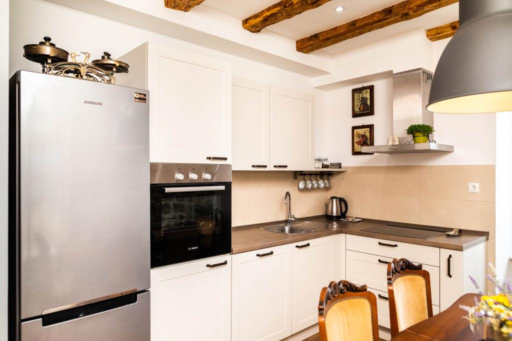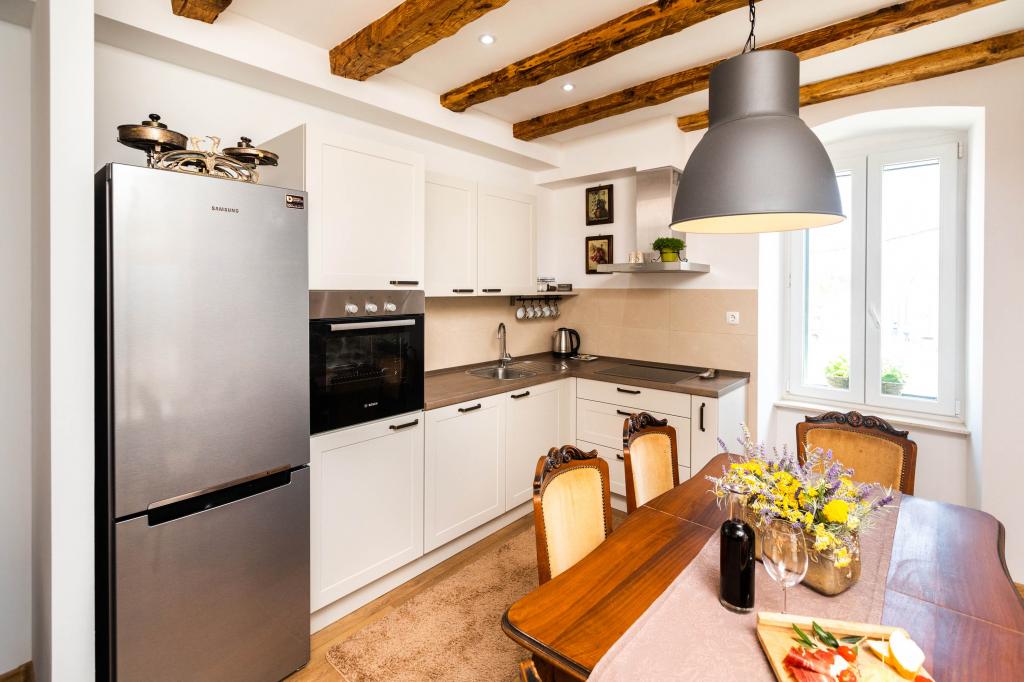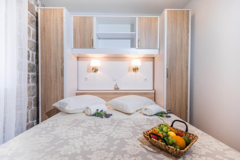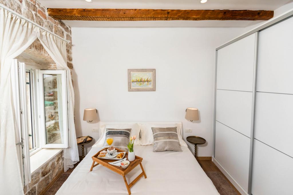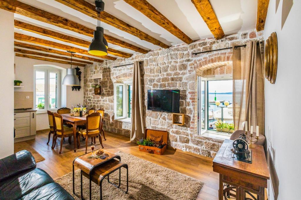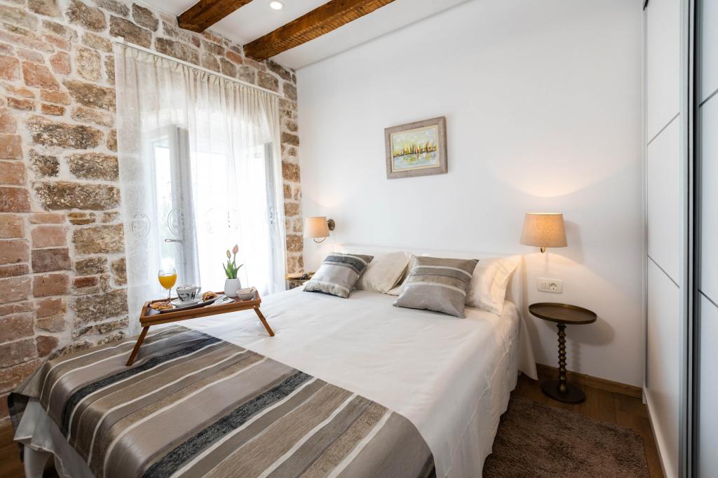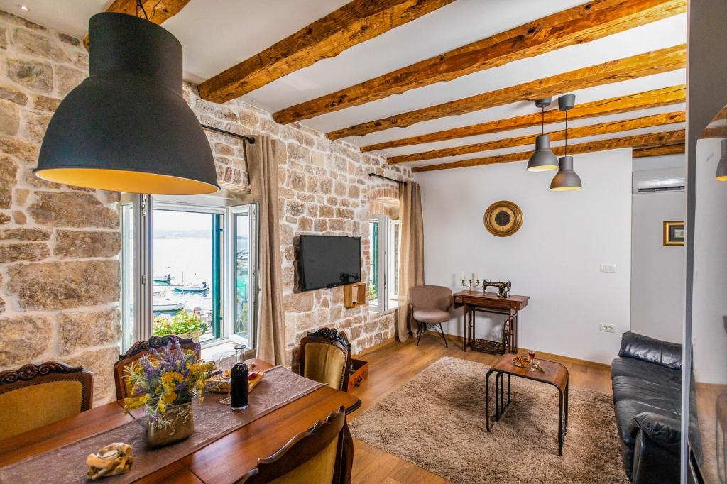 Útulný byt se dvěma ložnicemi, kompletně zrekonstruovaný, zařízený a vybavený, přímo u moře a dlouhé promenády. Kombinace moderního a starožitného doplňují kamenné zdi, původní dřevěné trámy a originální detaily z minulých dob. Nachází se v 1. patře budovy, kam vedou dřevěné schody. Díky své poloze je tato renesanční hradní pevnost z 15. století plná světla a výhledu na moře ze všech pokojů, takže máte dojem, že jste na velkém balkonu, ze kterého můžete sledovat a cítit temperament místních obyvatel, kteří se rádi stýkají, hovoří, hádají se, žertují, zpívat a fandit. Náš byt má: umístění, styl, eleganci, pohodlí a autentičnost.
