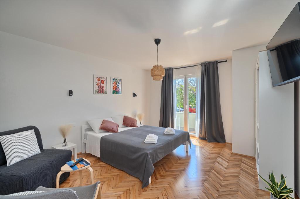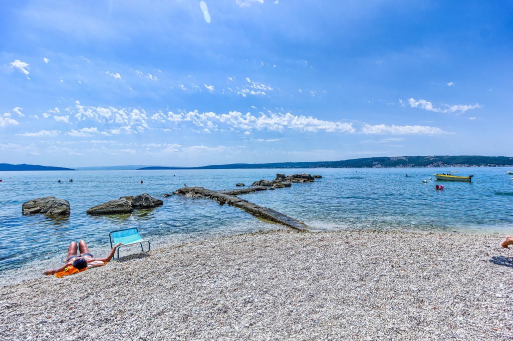 Apartmán v rodinném domě v Kaštel Štafilić, který se nachází v blízkosti letiště a 3 minuty chůze od pláže.