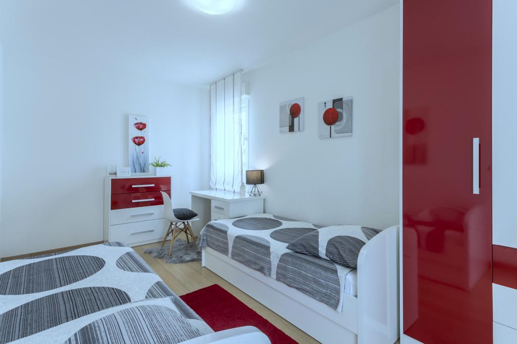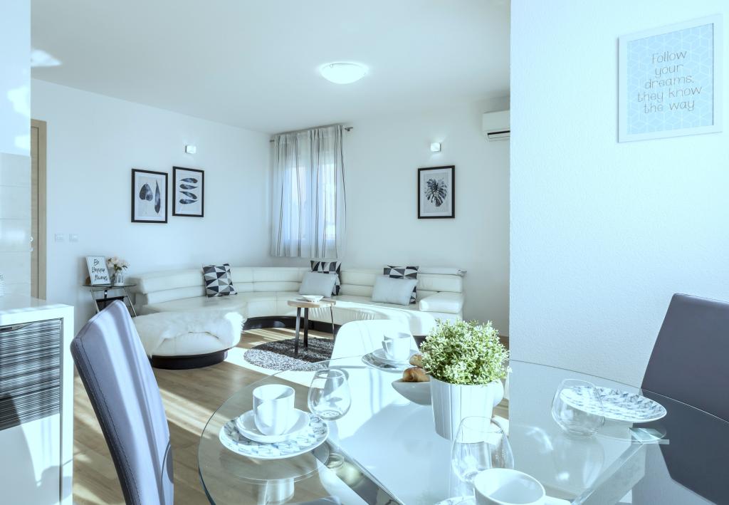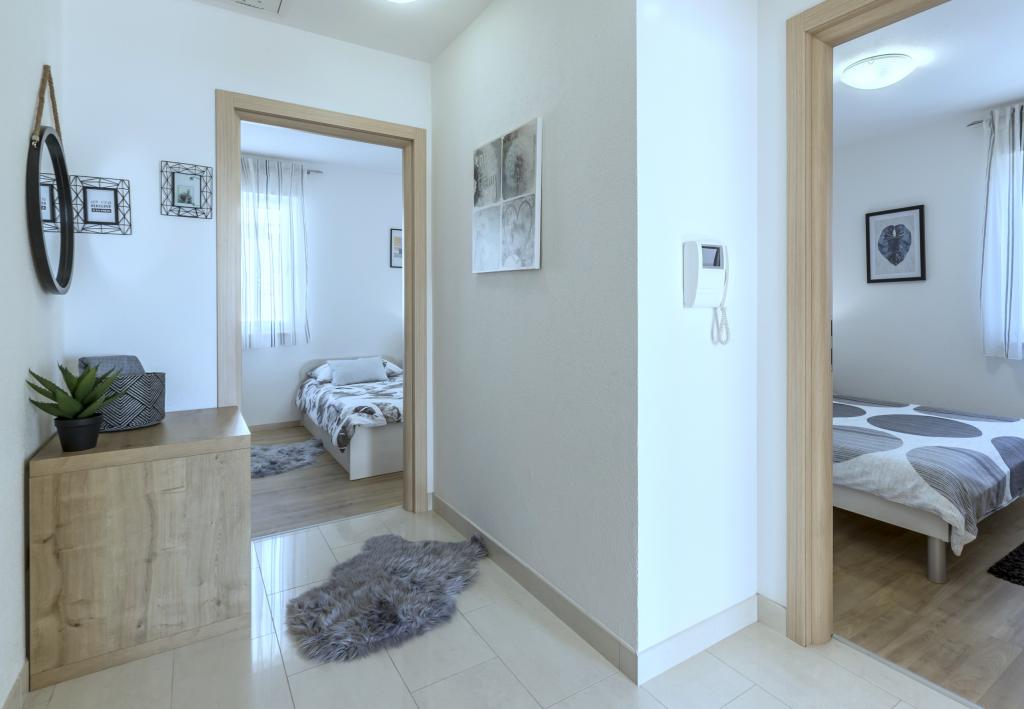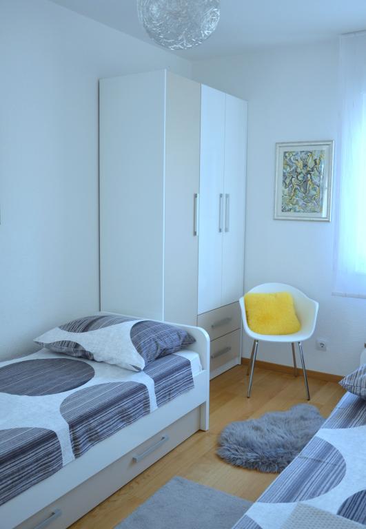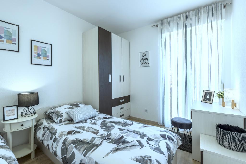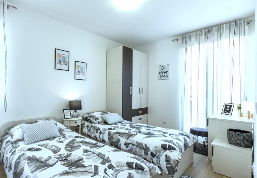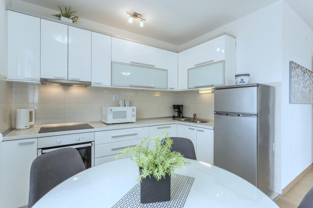 Iris Byty byly postaveny v 2013th roku a zahrnovat tři moderní apartmány s klimatizací a elegantním interiérem, který se nachází v blízkosti hlavní promenády a písčité plaže.Dječje hřiště se nachází ve vzdálenosti 100 metara.Prednost bytu se nachází v blízkosti velkých měst Split a Trogir, které jsou bohaté na své kulturní baštinom.Ljubitelji procházky si můžete vychutnat dlouhé procházky podél pobřeží prochází sedmi hradů. Apartmány mají plně vybavenou kuchyň, obývací pokoj, dvě ložnice a koupelna se sprchovým koutem. Všechny jednotky mají šatnu, obývací prostor a plazmovou TV.