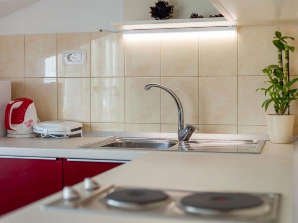 A nové a plně vybavené apartmány se nacházejí v samém srdci hradu. V přízemí se nachází velký supermarket s řeznictví a pekařství. Tyto apartmány se nacházejí pouhých 5 minut od pláže, bary, restaurace. Autobusová zastávka se nachází 50 m od objektu, a ambulance a lékárna. Kaštela se nachází mezi dvěma města UNESCO Split a Trogir, které se nachází asi 10 km.