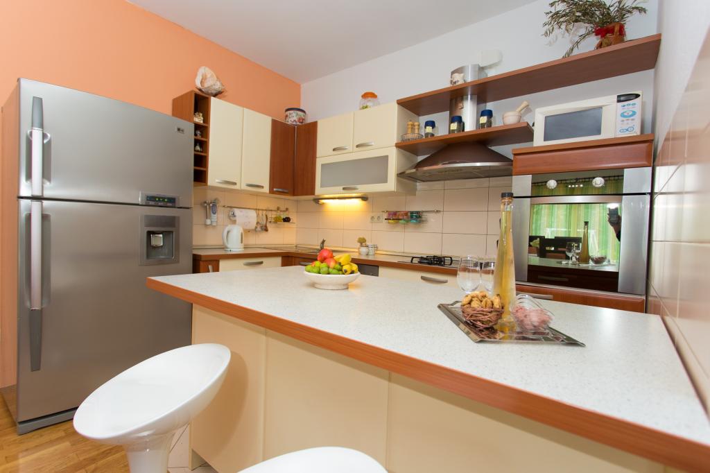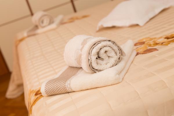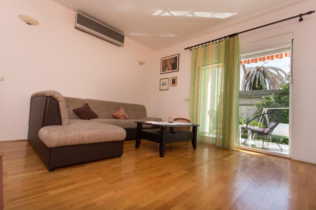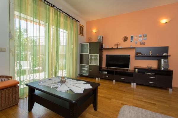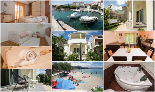 Paní hostitelka je velmi milá, upovídaná, vstřícná. Ubytování je velmi pěkné, čisté, udržované, voní levandulí. V kuchyni je vše, co potřebujete k vaření. Fotografie na stránce jsou skutečné. Gril je plynový. Hydromasážní vana je nahrazena klasickou, rohovou. Ubytování se nachází v blízkosti moře, obchodů, bankomatů, autobusů do Trogiru nebo Splitu. Moře a pláž jsou čisté a dobře udržované. Taverny, bary, cukrárny, vše blízko pláže. Doporučuji všem. Bez problémů se tam vyspí 7 lidí. Taky bych dal 10 hvězdiček.
