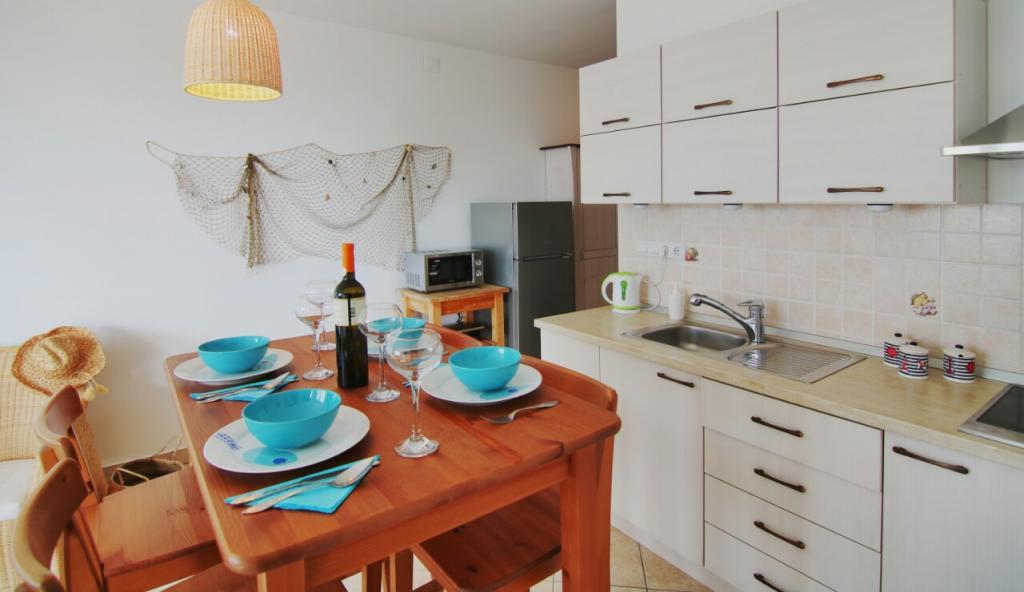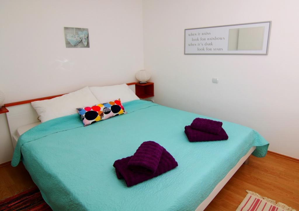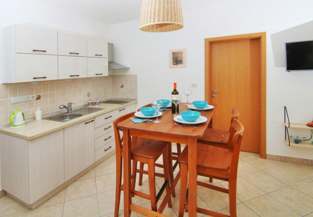Apartmán Eli je světlý a pohodlný apartmán s balkonem/lodžií s výhledem na moře, pouhých 50 m od pláže. Apartmán se nachází v klidné vesničce Smokvica Krmpotska, která má celkem asi 50 domů a 15 stálých obyvatel, a je vzdálený pouhých 7 km od Nového Vinodolského a 11 km od Senje. Smokvica je ideálním místem pro lidi, kteří chtějí strávit dovolenou v klidu, daleko od hektického tempa života a každý den si užívat štěbetání ptáků, zvuky vln a krásné ticho. Apartmán Eli je ideální pro pobyt dvou osob, které jsou v dosahu různých možností v okolí. Do apartmánu Eli se vstupuje chodbou s malou šatní skříní, která vede do kuchyně a jídelny propojené s obývacím pokojem, ložnicí a koupelnou. Zvláštním místem v apartmánu je balkon/lodžie, která je vybavena stolem pro 4 osoby a elektrickým grilem. Apartmán je vybaven klimatizací, Wi-Fi, TV, mikrovlnnou troubou, lednicí s mrazákem, toustovačem, rychlovarnou konvicí, žehlicím prknem a žehličkou, fénem, toustovačem.....