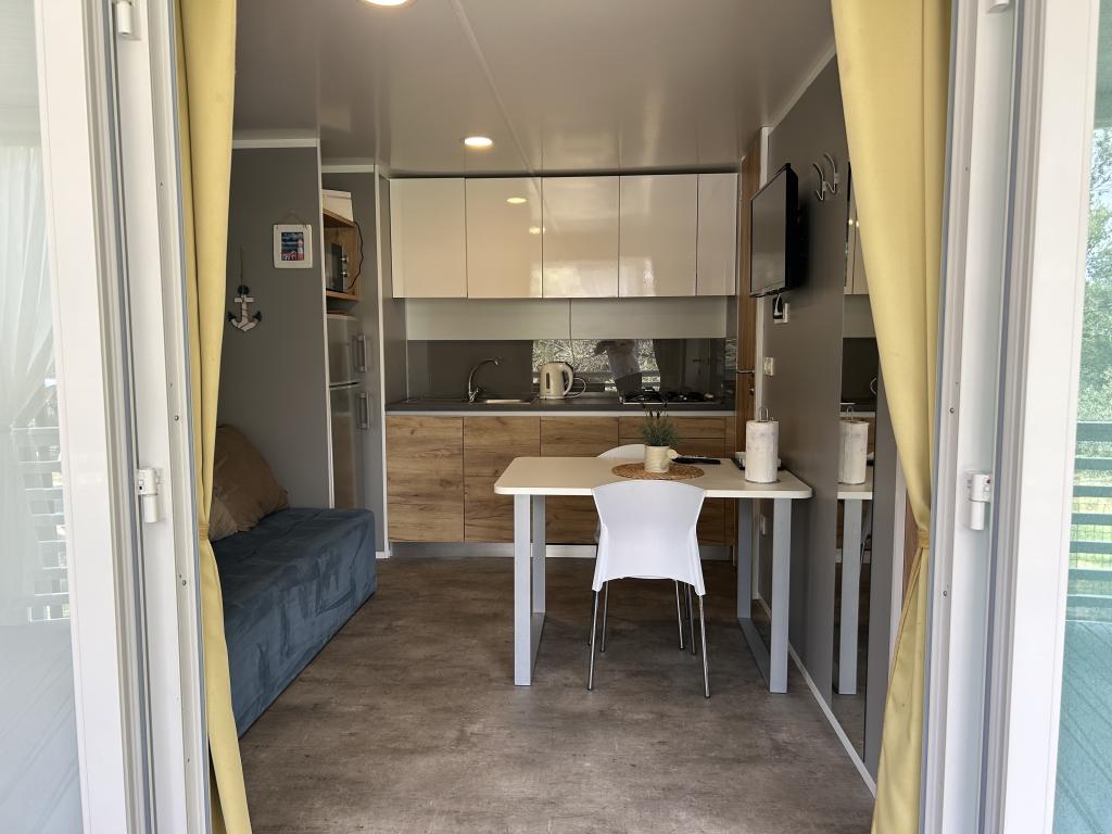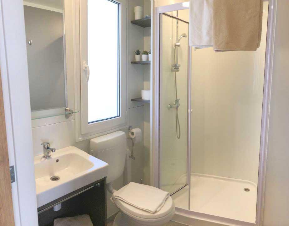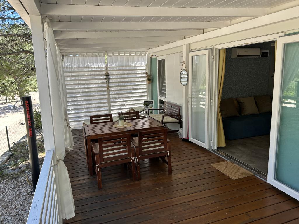 Adriastay 360 je luxusní mobilní dům nacházející se v kempu Klenovica, na pozemku 100 m od pláže. Užijte si krásný výhled z terasy na nekonečné moře a ostrov Krk a zažijte nezapomenutelný západ slunce. Kromě bazénového komplexu 50 m od domu se v kempu nachází obchod s potravinami s pekárnou, která denně nabízí čerstvé produkty. Gastro Corner je restaurace nabízející rybí a masové pokrmy a také pizzu. Podél pláže se nacházejí kavárny s osvěžujícími nápoji a zmrzlinou. Pokud se chcete projít, zaběhat si nebo máte zájem o cyklistiku, k dispozici jsou stezky do rybářské vesnice nebo stezka podél moře. Staňte se našimi hosty a prožijte tu nejkrásnější dovolenou s rodinou, partnerem nebo přáteli.