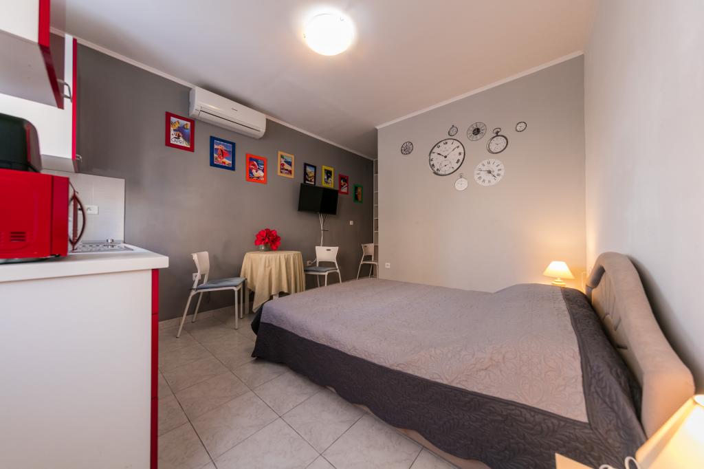 Dům Kastelani byl postaven v roce 1939, několikrát renovován a v roce 2016 získal tepelnou fasádu, takže je příjemné zůstat v horkých letních měsících. Nabízíme vám 3 apartmány a 1 studio pojmenované podle našich vnoučat: Alen, Izabela, Roko a Sofia. Studiový apartmán Sofia a apartmán Alen se nacházejí v přízemí a jsou určeny pro pobyt pro 2 osoby; byt Izabela se nachází v 1. patře (2 + 1) a byt Roko ve 2. patře (2 + 1). Všechny jednotky jsou klimatizované, nabízejí bezdrátové připojení k internetu, veřejné parkoviště se nachází 100 m od domu, také soukromé parkoviště (rezervace + poplatek). Terasa na opalování a relaxaci se nachází v úrovni 1. patra naší budovy a je k dispozici pro hosty v 1. a 2. patře. Apartmány Kastelani se nacházejí na klidném místě 300 m od centra, krásné pláže "Kamenice" a městské pláže "Lucica" a potápěčského centra B-24.