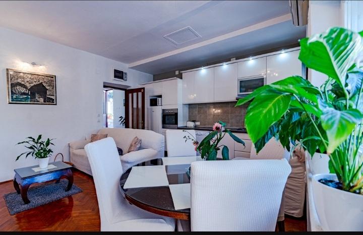 Luxusní a plně vybavený apartmán pro 4 osoby se nachází hned vedle pláže a promenády. Staré Město se nachází sedm minut od bytu. Apartmán má terasu s výhledem na moře. Byt se nachází v první řadě u moře a je blízko veškeré občanské vybavenosti, a dostatečně daleko, aby se zabránilo hluku ze silnice. Byt je vhodný pro čtyři osoby a parkovací místo je zajištěno v místní garáži, která se nachází pár minut od bytu. Byt má 68 m2 a je vhodný pro 4 osoby.
