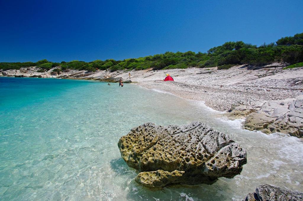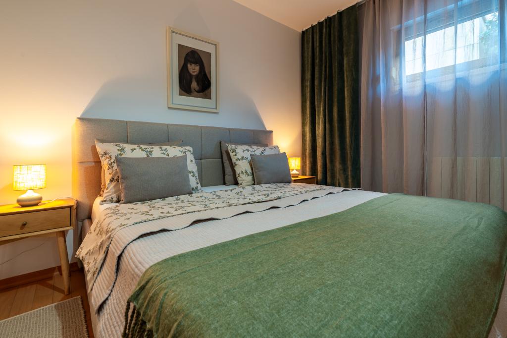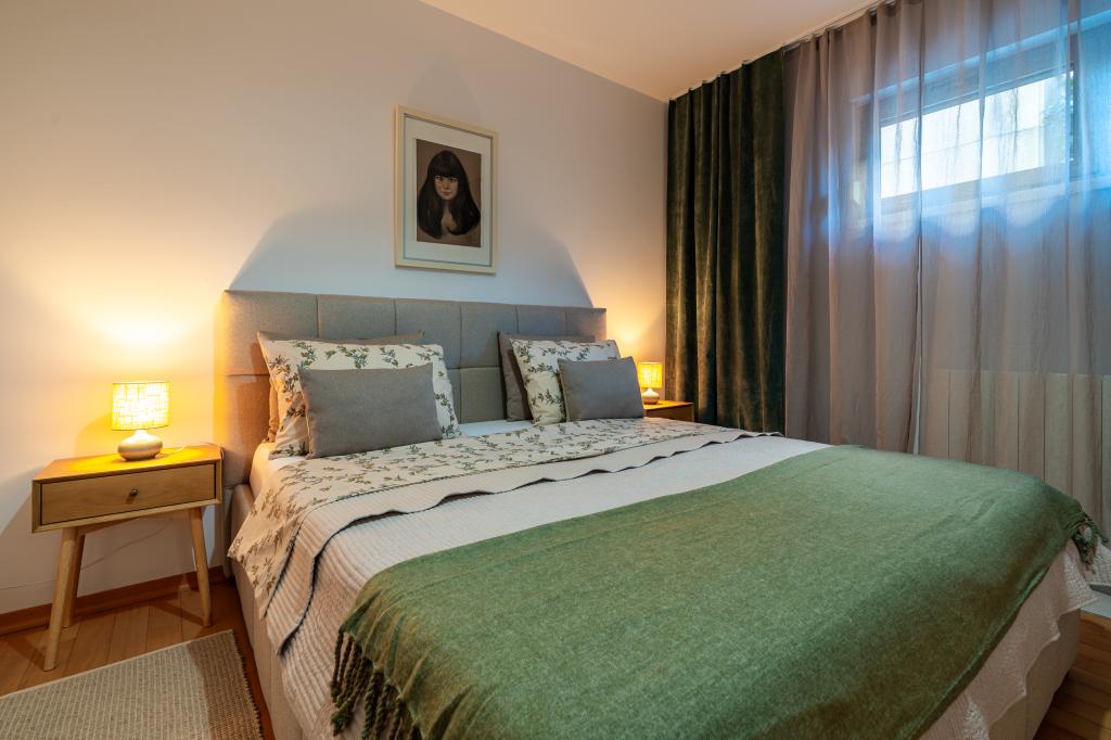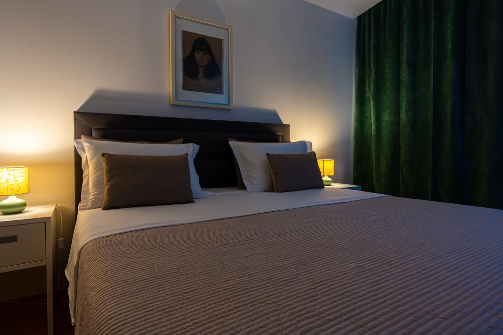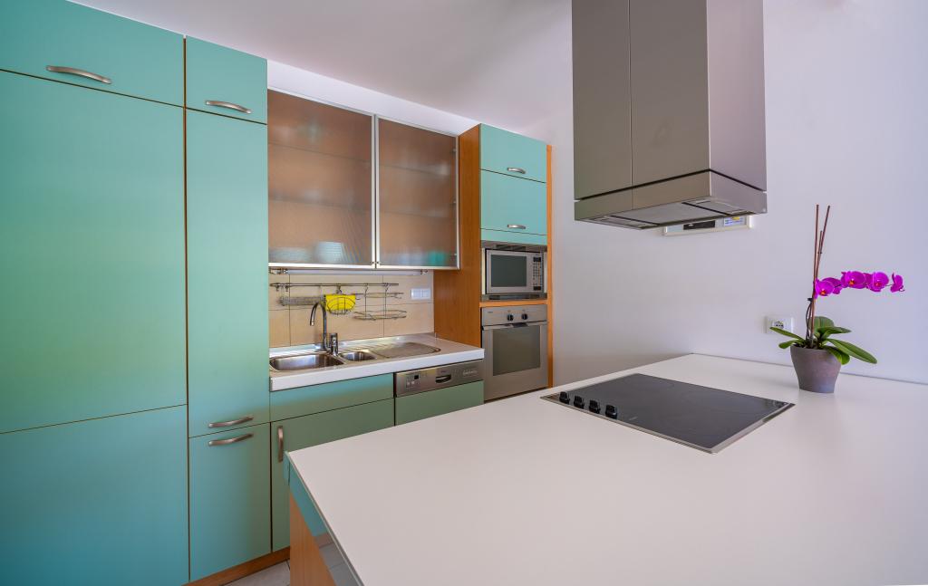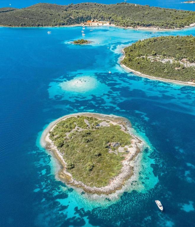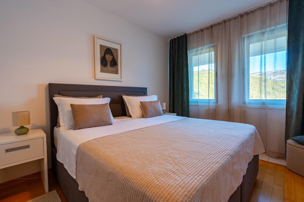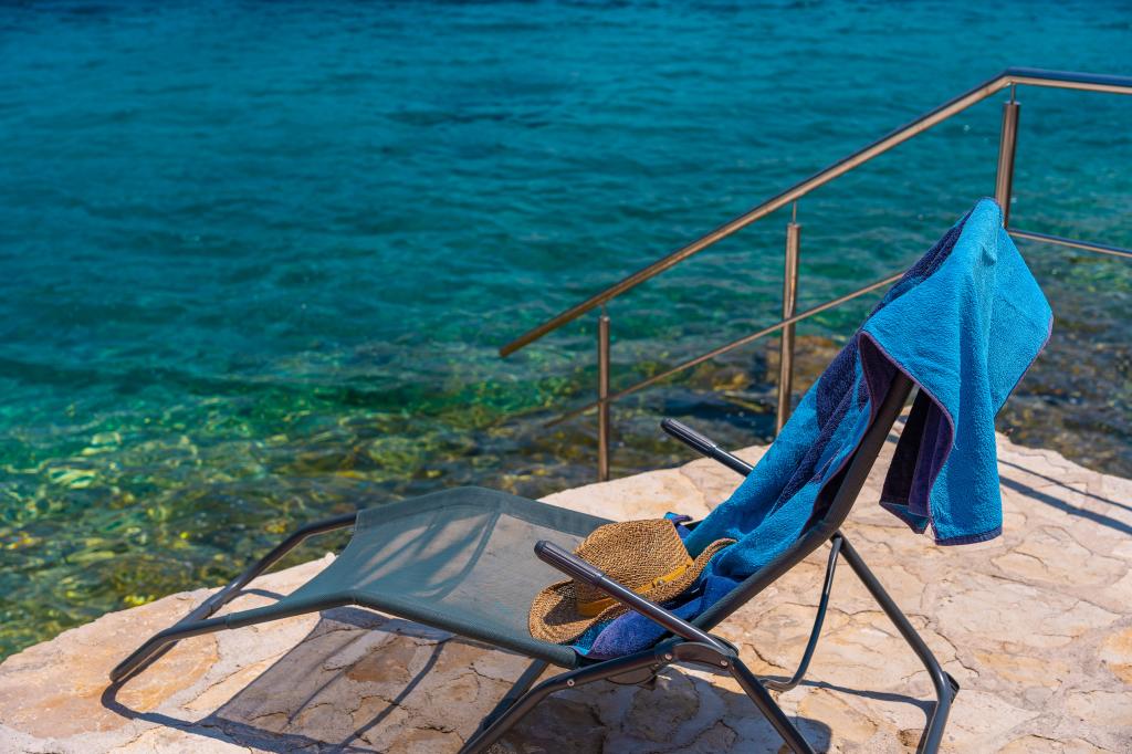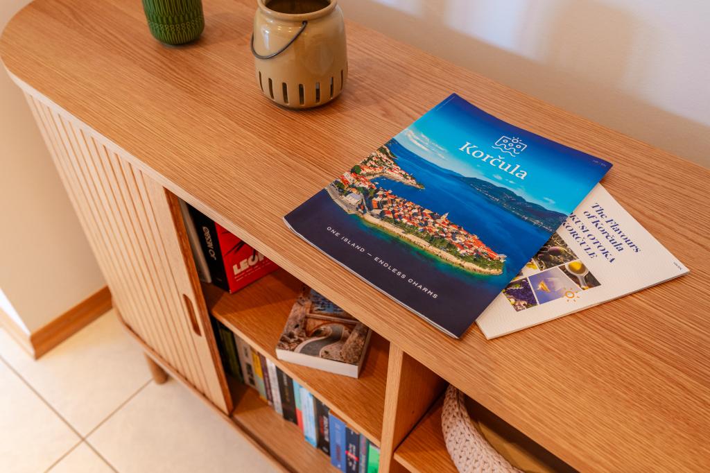 Villa Avantgarde - apartmán přímo u moře pro 4 osoby - velmi klidná zátoka - ostrov Korčula - Chorvatsko Je dílem slavného chorvatského a světově uznávaného architekta. Nachází se v klidné zátoce, cca. 4 km od centra města. Ve vile máte k dispozici pohodlný apartmán o velikosti cca. 100 m2, který se skládá ze 2 ložnic, koupelny a obývacího pokoje s dobře vybavenou kuchyní, jídelnou a obývacím pokojem, ze kterého je vstup na prostornou terasu s přímým vstupem na soukromou pláž. Pláž je 9 m od apartmánu. Ve vile je k pronájmu pouze jeden byt. Obklopují ho upravené trávníky, zeleň, ptačí zpěv a moře. Hostům je k dispozici uzavřené soukromé parkoviště. Ložnice, obývací pokoj, jídelna a terasa jsou orientovány přímo na moře. Lze jej využívat po celý rok, jelikož je vybaven ústředním topením.