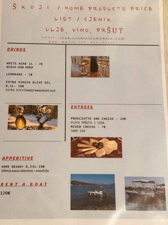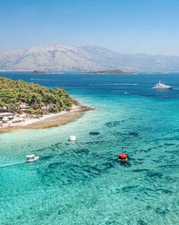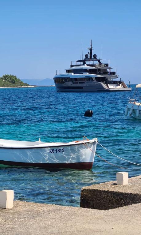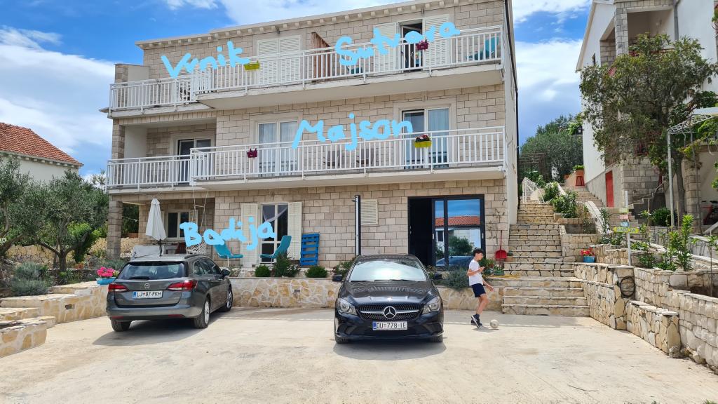 Dům Škoji k pronájmu na ostrově Korčula, v ráji Chorvatska. Nově postavený a plně vybavený "Škoji", který se nachází mezi městem Korčula a městem Lumbarda podél zálivu Soline, nabízí mimořádný výhled na celý záliv a okolní ostrovy a ostrůvky. Čtyři apartmány, tradiční středomořská minimální architektura a prostorný venkovní obývací pokoj s grilem, středomořskou zahradou, sup boardy, jízdními koly a plážovými lehátky...všechny služby...vše zahrnuto v nabídce. Prožijte svou dovolenou na místě, kde si můžete užívat přírodu, a připravujte si jídla s extra panenským olivovým olejem ze zahrady. Pod domem je malá pláž, dost na relaxaci a koupání, a vedle pláže je nabízený motorový člun Key Largo Sessa s 60 hp, se kterým je relaxační plout na nedaleké ostrovy a zátoky, úžasný zážitek . K dispozici jsou čtyři parkovací místa a v celém objektu je k dispozici Wi-Fi. Plně vybavené apartmány Badija/4+2/, Majsan/4+2/, Sutvara/4+2/ a Vrnik/2+2/ s krásným výhledem na moře, přičemž okolní zahrady vytvářejí ideální prostor pro obývací pokoj , zatímco výzdoba interiéru je klidná, uklidňující a jednoduchá - ať se u nás na Korčule budete cítit jako doma.