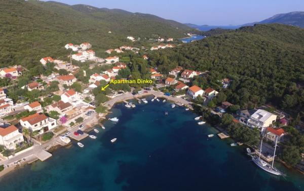 Apartmán Dinko je jednoduchý a pohodlný malý dům na pláži, který se nachází v klidné zátoce Žrnovska Banja, jen pár kroků od moře, a je zcela chráněn před zraky kolemjdoucích, obklopen olivovými háji, citrusovou a zeleninovou zahradou. pro tebe. Pokud chcete uniknout všednímu životu a od všeho si odpočinout, jste na správném místě! Okamžitě se spojíte s Dinkem, dodají vám zvláštní uklidňující atmosféru a stanou se vaším druhým domovem! Představte si svou první ranní kávu na terase ... sledujete křišťálově čisté moře, posloucháte cvrkot ptáků a cvrčků, vdechujete vůni pomerančů, oliv a aromatických bylin ... Byt se skládá z plně vybavené moderní kuchyně, 2 ložnice, 2 toalety a koupelna, 2 prostorné terasy s výhledem na moře a parkování pro 2 vozidla. Klimatizace, neomezený internet, TV (digitální a satelitní kanály), gril. Ideální pro rodiny s dětmi, páry a přátele. Přijďte si dopřát a užít si to! Dinko se na vás těší!