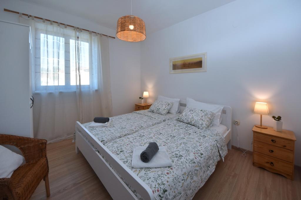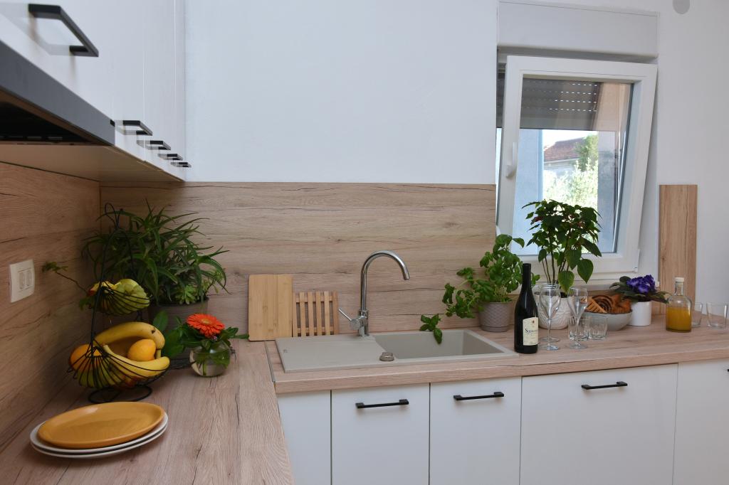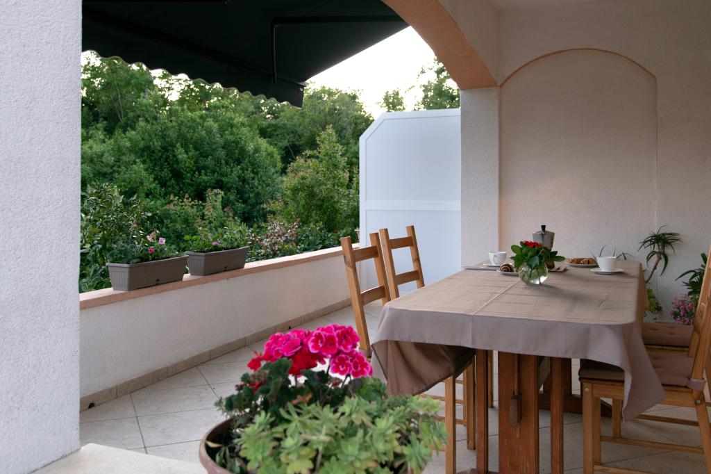 Byt se nachází v rodinném domě, který je obklopen olivovníky, květinami a cvrlikáním ptáků. Host má naprosté soukromí, protože před domem ani vedle něj nejsou žádné budovy. Pokud chcete klidný kout, je to ideální místo k odpočinku V blízkosti domu se nachází autobusové nádraží, restaurace, lékárna, dětské hřiště a pláž je vzdálená 700 metrů. Autem to na pláž trvá 2-3 minuty a pěšky asi 10 minut.