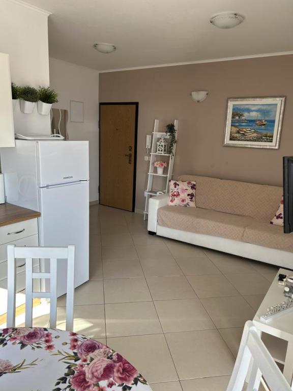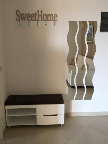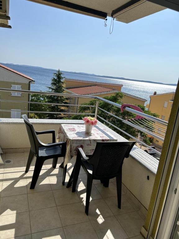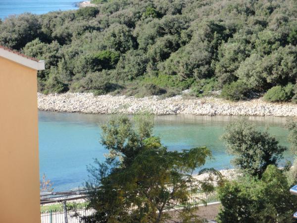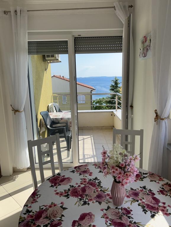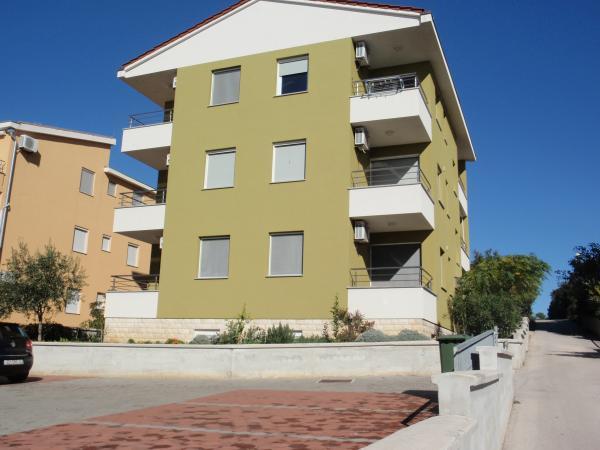Moderní apartmán v klidném rezidenčním domě ve třetím patře s krásným výhledem na moře. Apartmán má ložnici s manželskou postelí, gauč s rozkládací pohovkou, plně vybavenou kuchyň a terasu s krásným výhledem na moře. Apartmán se nachází 50 m od moře a pláže.