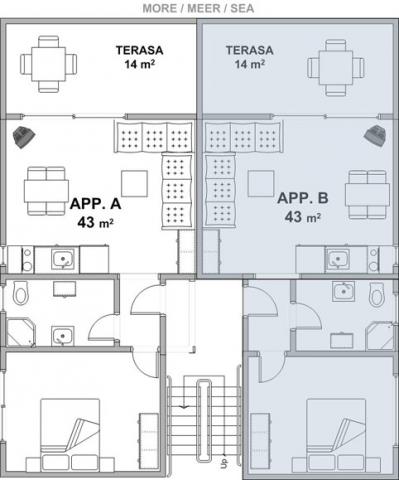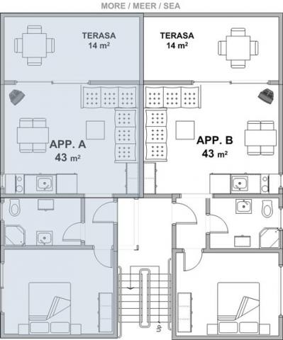 Apartmány se nacházejí v klidné vesnici Kožino, 5 km od Zadaru, 4 km od Zatonu a jen 2 km od Petrčani, kde je krásná písečná pláž. Objekt se skládá ze čtyř 2pokojových bytů. Všechny apartmány mají terasu s výhledem na moře. Před domem je velké soukromé parkoviště a vzdálenost od pláže je pouhých 70 metrů. Ticho a klid, které poskytuje místo, stejně jako poloha apartmánu a blízkost města Zadar vám zajistí příjemnou dovolenou.
